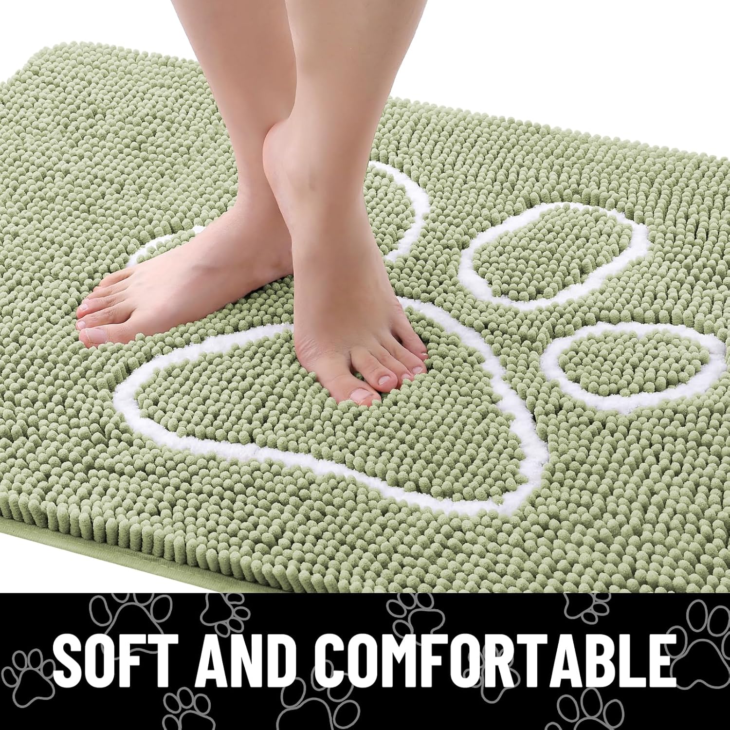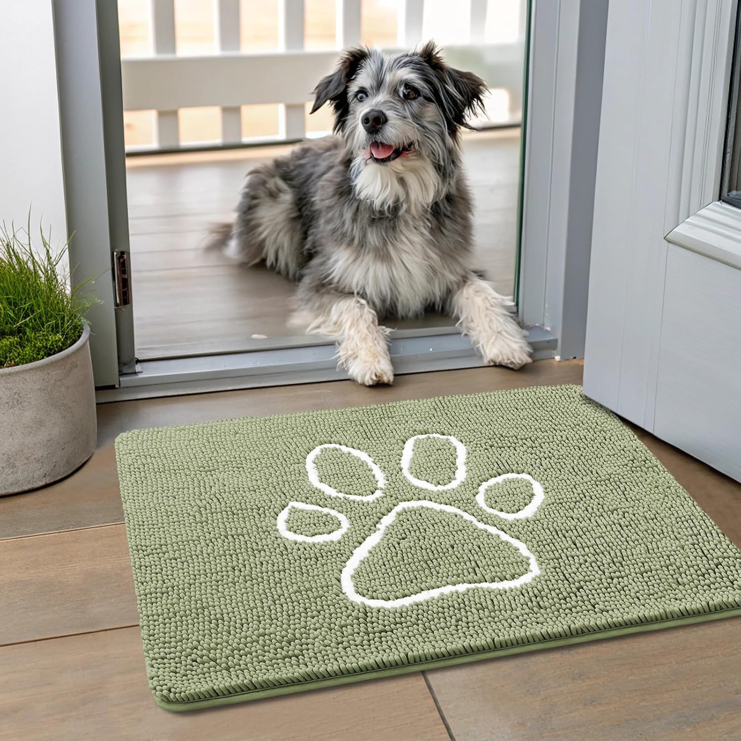 Smiry Dog Door Mat for Muddy Paws, Absorbent Dirt Trapper Non Slip Quick Dry Washable Chenille Mat for Mud Dogs, Entry Rug for Indoor and Outdoor (24x16 Inches, Sage Green)