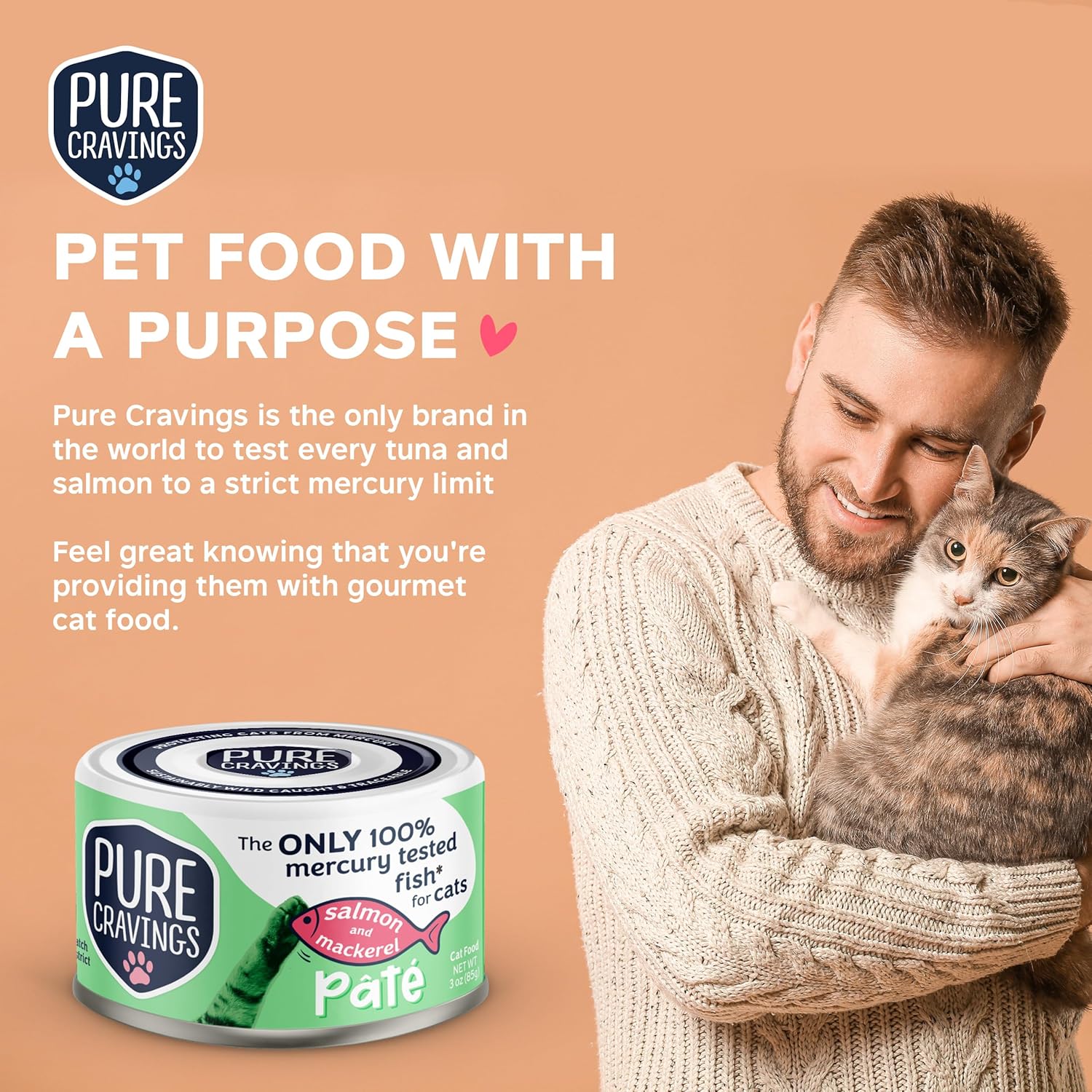 Salmon and Mackerel Pate, Canned Wet Cat Food, 100% Mercury-Tested, Moist Can Fish, Grain-Free Protein, Non-GMO, 12 Pack