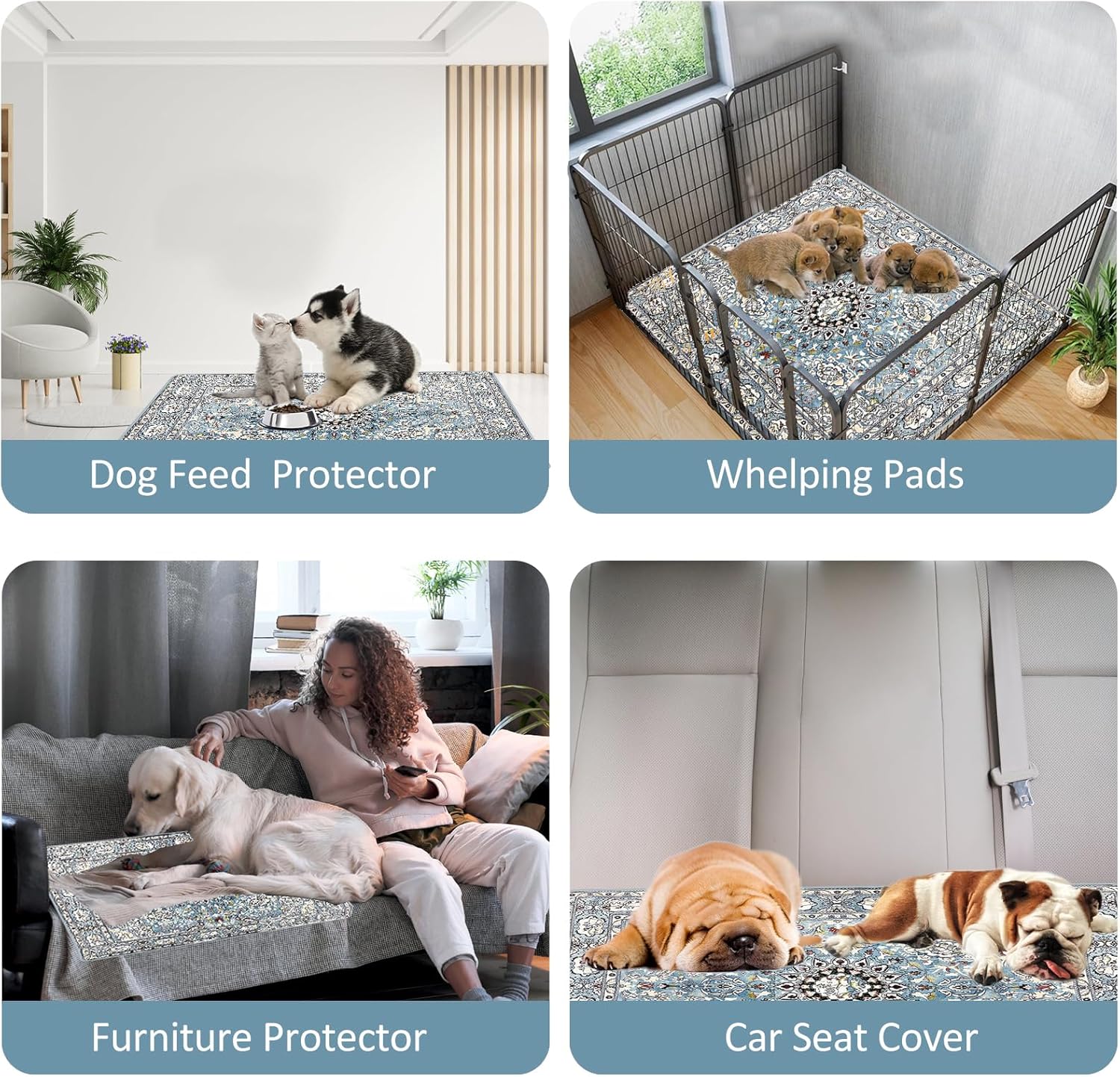 Washable Pee Pads for Dogs, (2 Pack, 36"x42") Upgrade Reusable Puppy Pads with Non-Slip Rug Pad, Super Thickening Absorbent Leakproof Dog Traning Pads Whelping Pad for Dogs, Doggie(Blue-2)