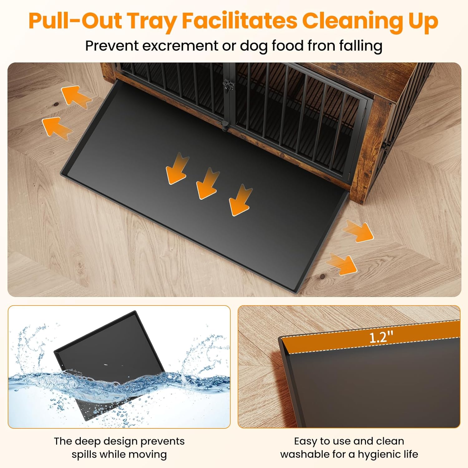 - 【Versatile Tray Usage】Put the tray under the bottom mesh to catch crumbs, fur, and dirt, keeping your dog's place clean without dirtying your floor, maintaining a tidy living space for your pet, or place the tray above the mesh to offer your dog a flat, comfortable surface—it's up to you