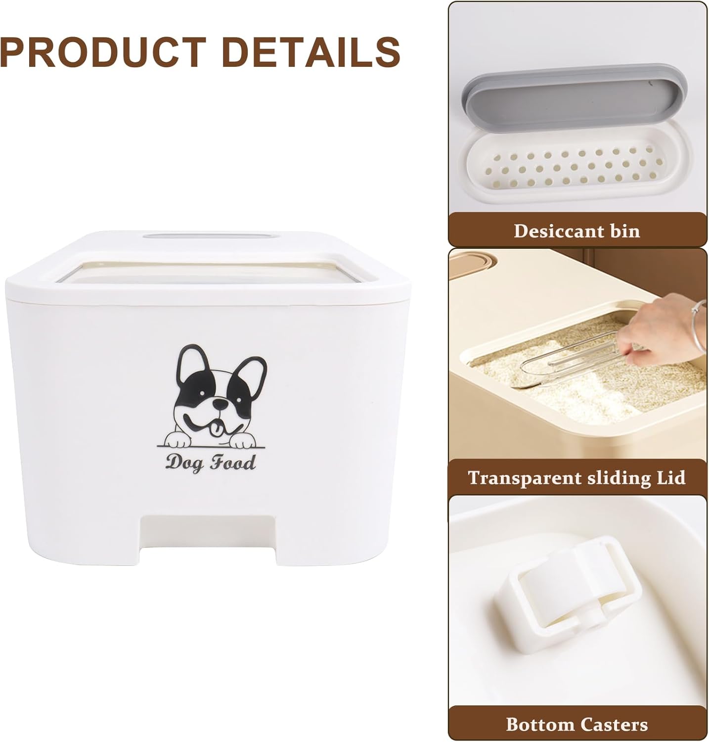 - 【Large Capacity Pet Food container 10lbs】-This airtight dog food bin size is 15''x8.7''x5.9'' in (IN),it can hold up to 12lbs a variety of pet food or treats, your cute family member's dry foods will be kept fresh in our sealable pet food container.