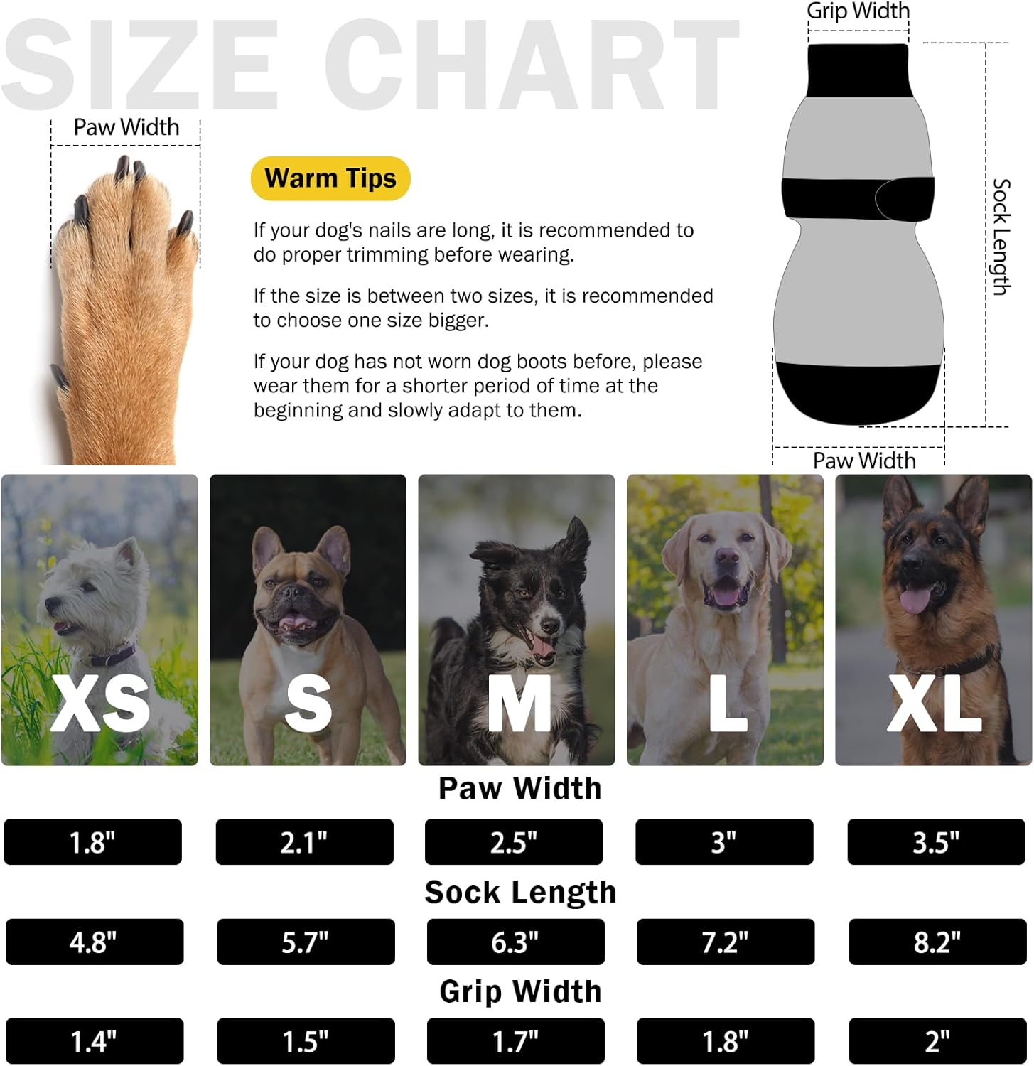 - SIZE GUIDE: XS-Paw width 1.8in, sock length 4.8in. Please be sure to measure your pet before purchasing. If the paw width is between two sizes, please choose the larger size. Includes 6 dog grip socks (two more available for replacement than other sets).