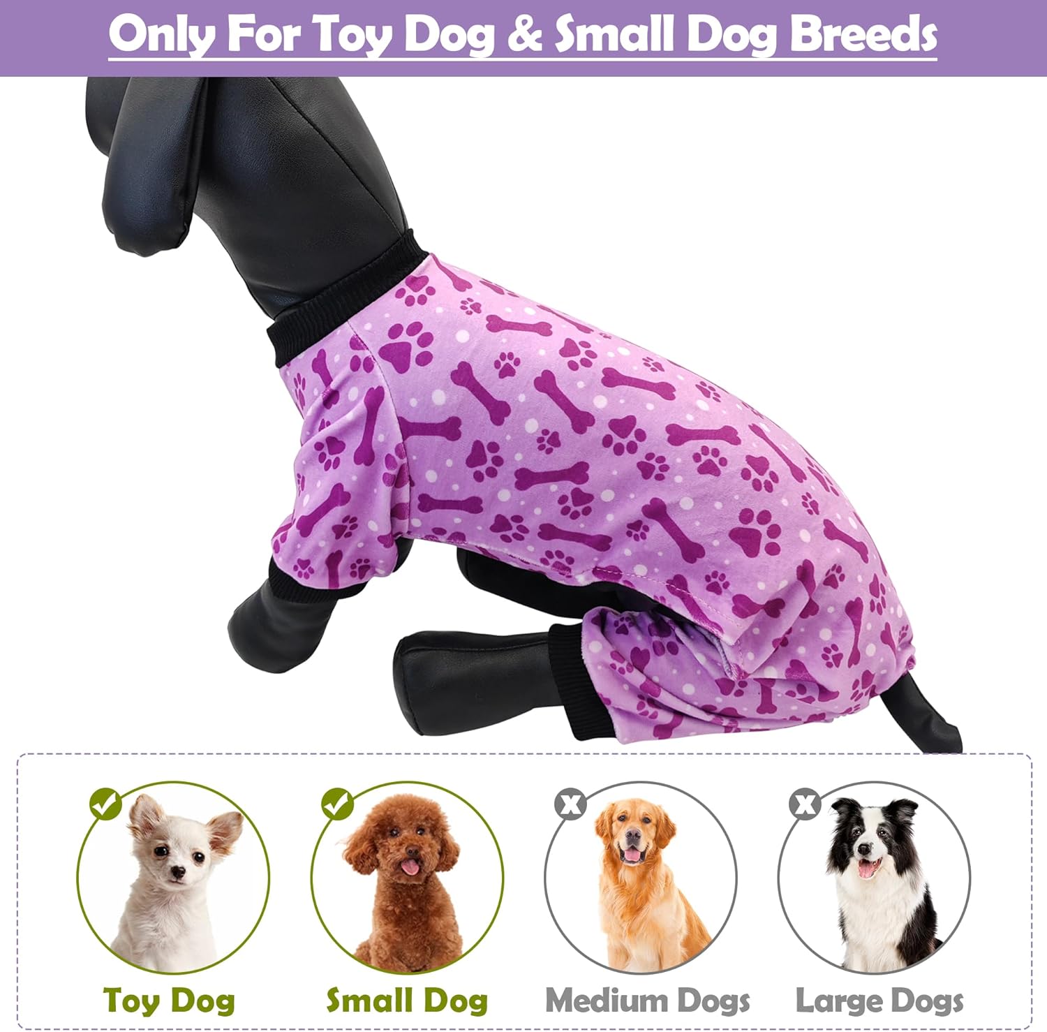 PET SHOW 4 Pack Small Dog Pajamas Paw Bone Patterns Cute Clothes for Medium Dogs Soft Fleece Stretchy PJs 4 Legged Jumpsuit Puppy Cats Onesies Outfits with Sleeve Dachshund Doggies Girl Boy (XX-Large)