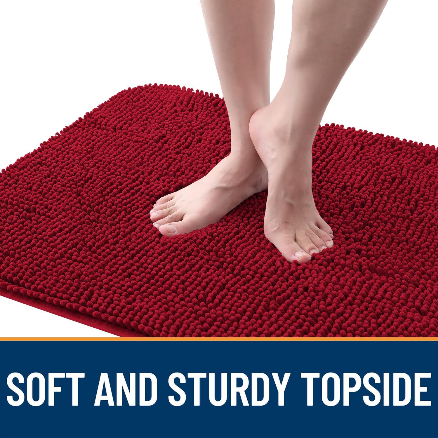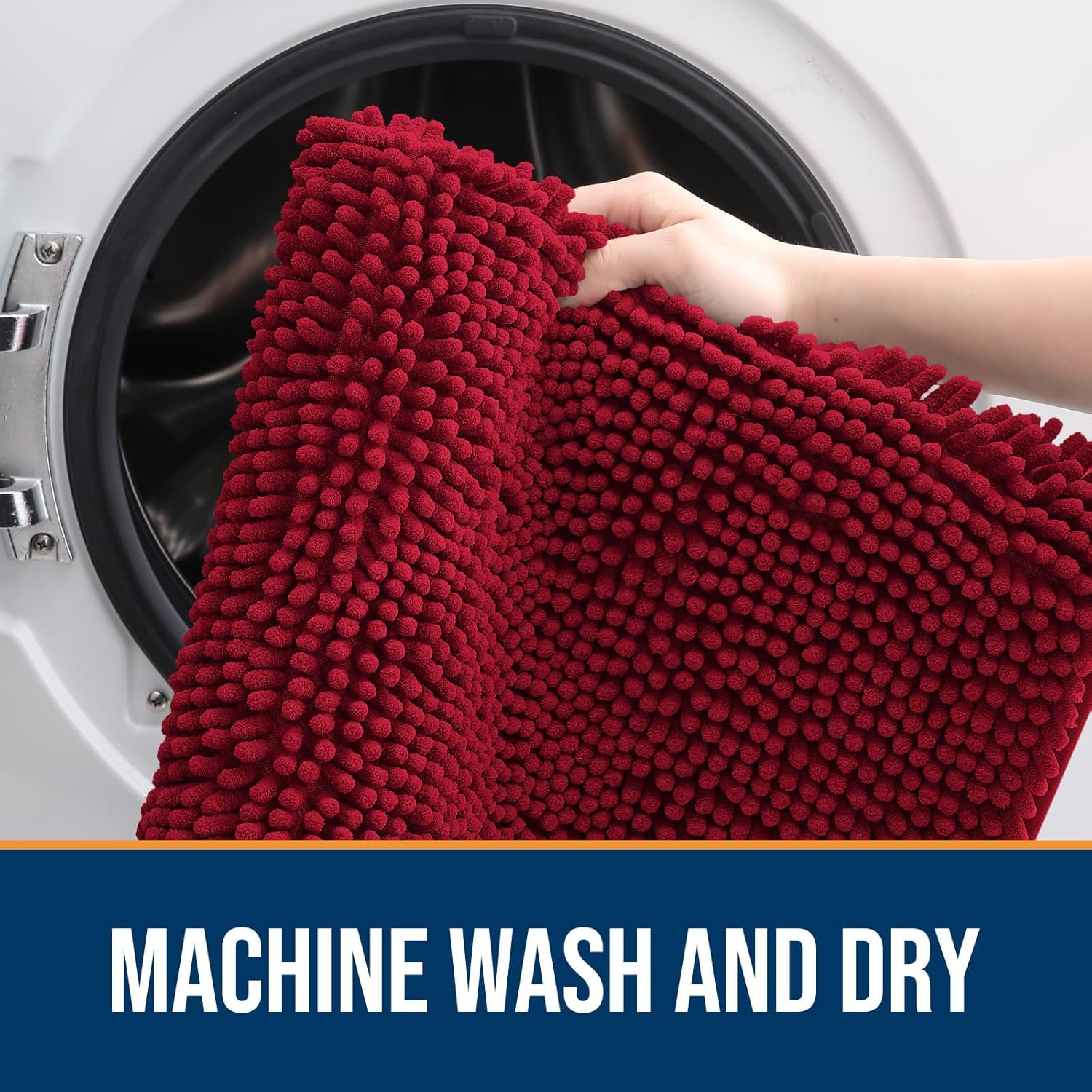 OLANLY Dog Door Mat for Muddy Paws 40x32, Absorbs Moisture and Dirt, Absorbent Non-Slip Washable Doormat, Quick Dry Chenille Mud Mat for Dogs, Entry Indoor Entryway Carpet for Inside Floor, Red