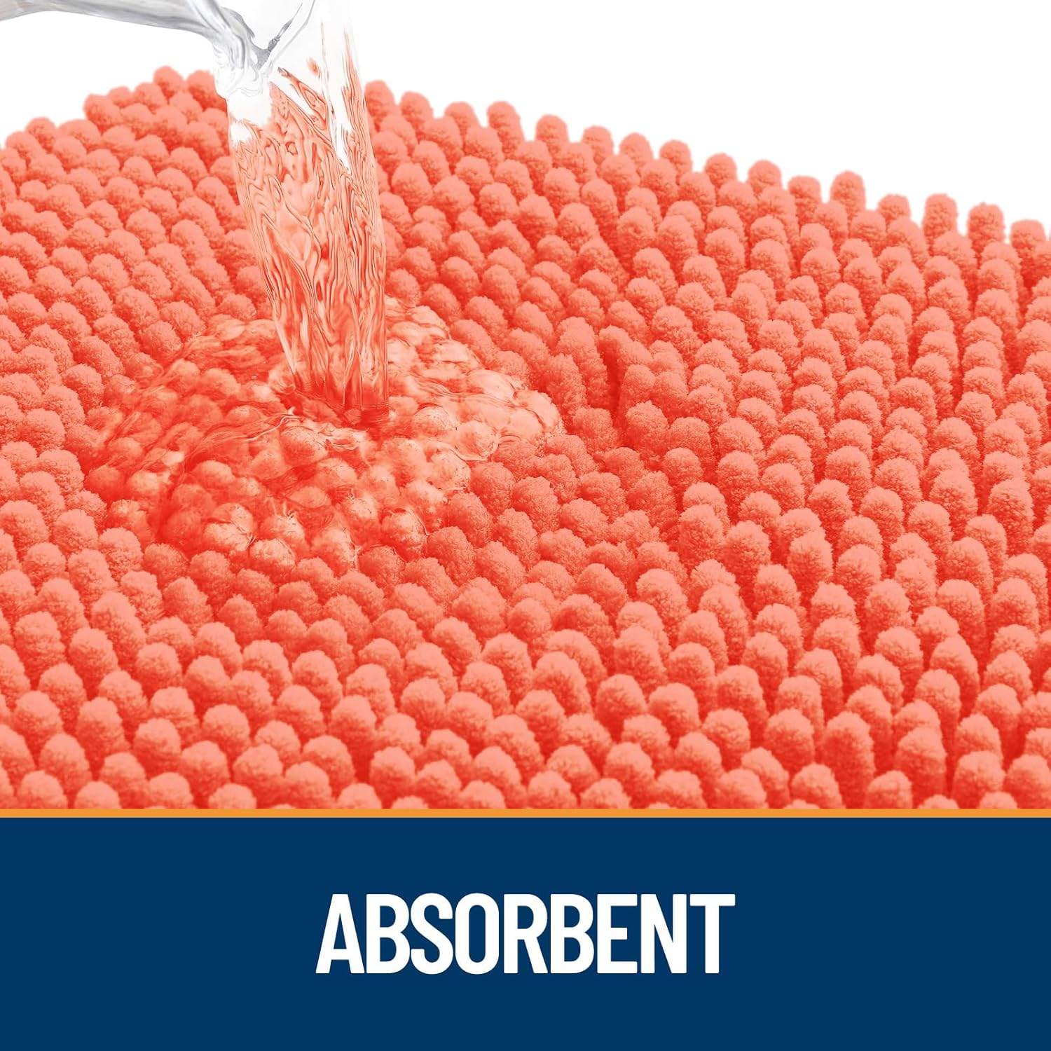 OLANLY Dog Door Mat for Muddy Paws 36x24, Absorbs Moisture and Dirt, Absorbent Non-Slip Washable Doormat, Quick Dry Chenille Mud Mat for Dogs, Entry Indoor Entryway Carpet for Inside Floor, Coral