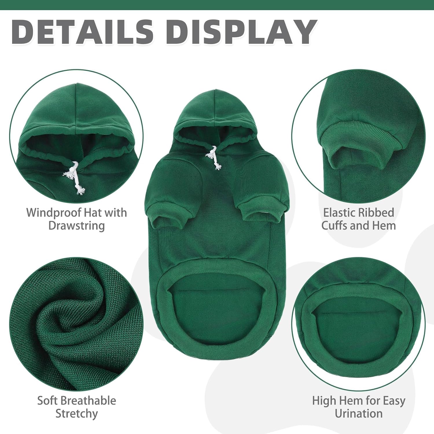 KOOLTAIL Basic Dog Hoodie - Soft & Warm Dog Hoodie Sweater with Leash Hole and Pocket, Dog Winter Coat, Cold Weather Clothes Sweatshirt for Small Medium Large Dogs Puppy Cat Boys Girls Deep Green XL