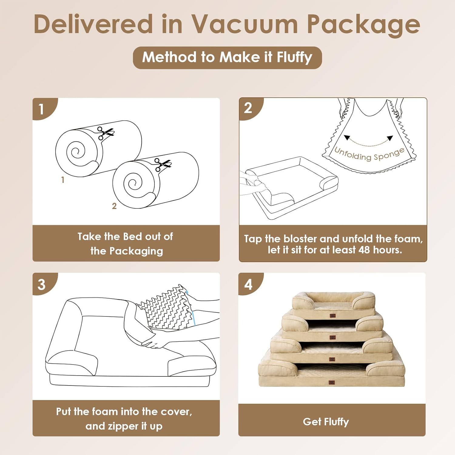 • CARE INSTRUCTIONS: Our dog bed features a removable and washable cover with a zipper closure, making it easy to clean. Remove the foam insert, and the cover can be washed in a machine. Please note that the foam insert is not washable. Allow the bed to expand for 24-48 hours after unpacking.