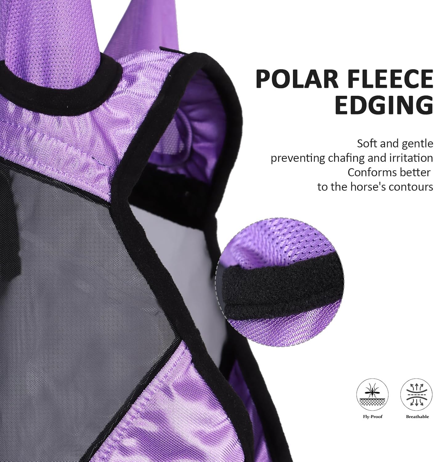 Harrison Howard Pro Luminous Horse Half Face Fly Mask Large Eye Space with Ears UV Protection for Horse Gentle Lavendar XL