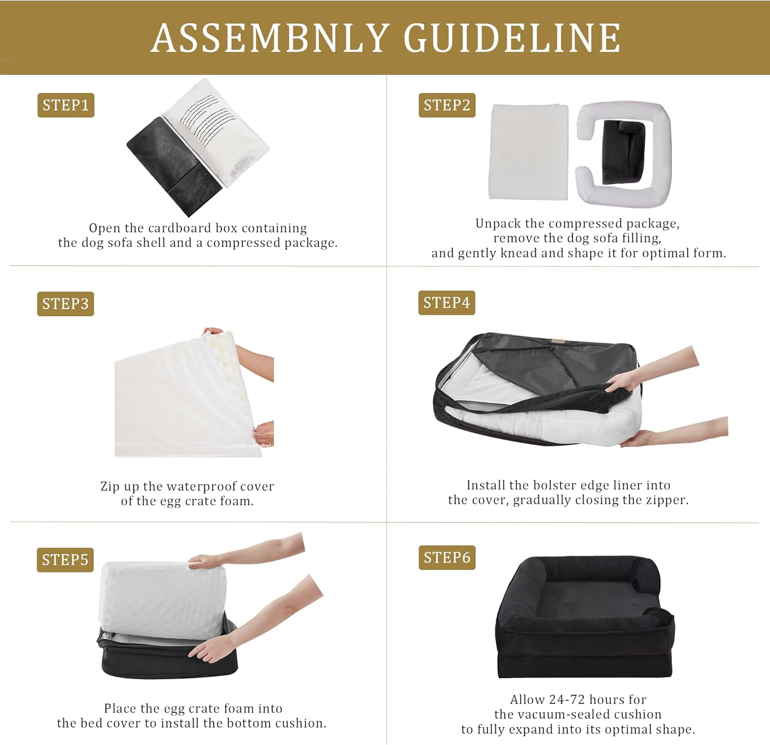 • Suitable Size: Suitable for All Breeds: 53"W x 42"L x 8"D; Sleeping surface: 44.5"W x 37.5"L (Up to 150lbs); When selecting the product size, please pay attention to the sleeping area. Please wait for 48 hours for full expansion to ensure optimal height and comfort before using.