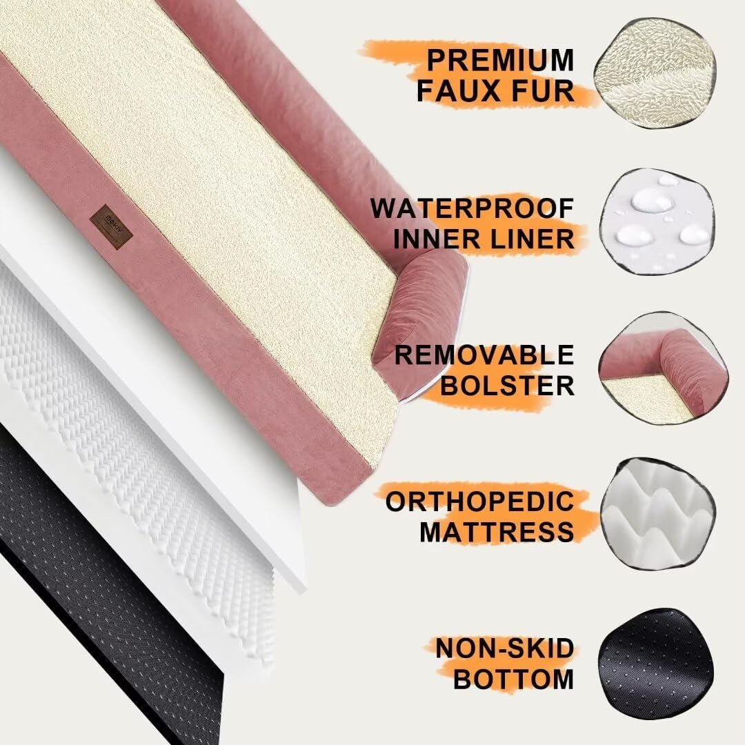 Large Dog Bed Orthopedic Washable: Beds Bolster - XL XLarge Big Dogs - Memory Foam - Ultra-Soft Pink XL Dog Crate Bed - Waterproof with Removable Cover