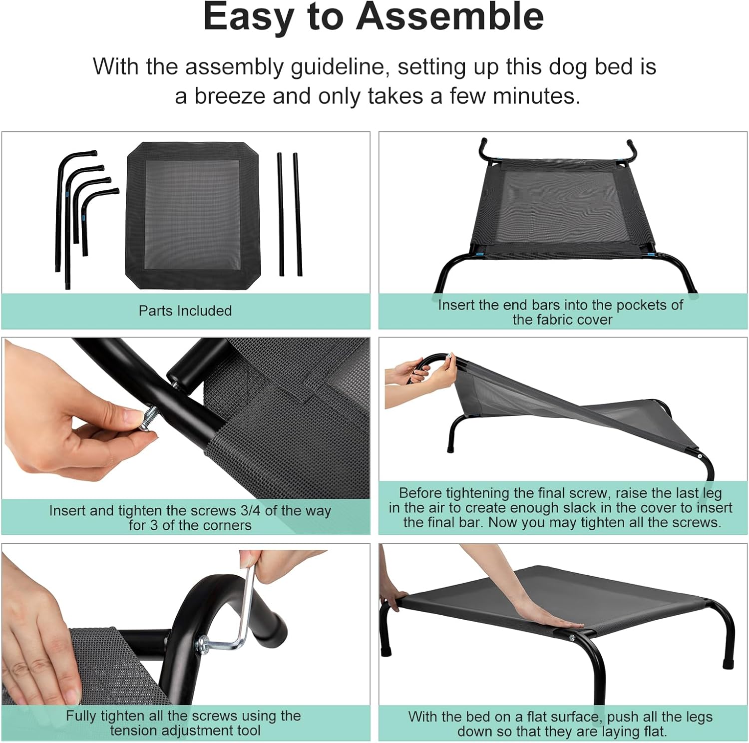 • Enhanced Comfort and Airflow: Our Cooling Elevated Dog Bed Cot provides an elevated sleeping surface that promotes airflow and keeps your large dog cool and comfortable all night long.