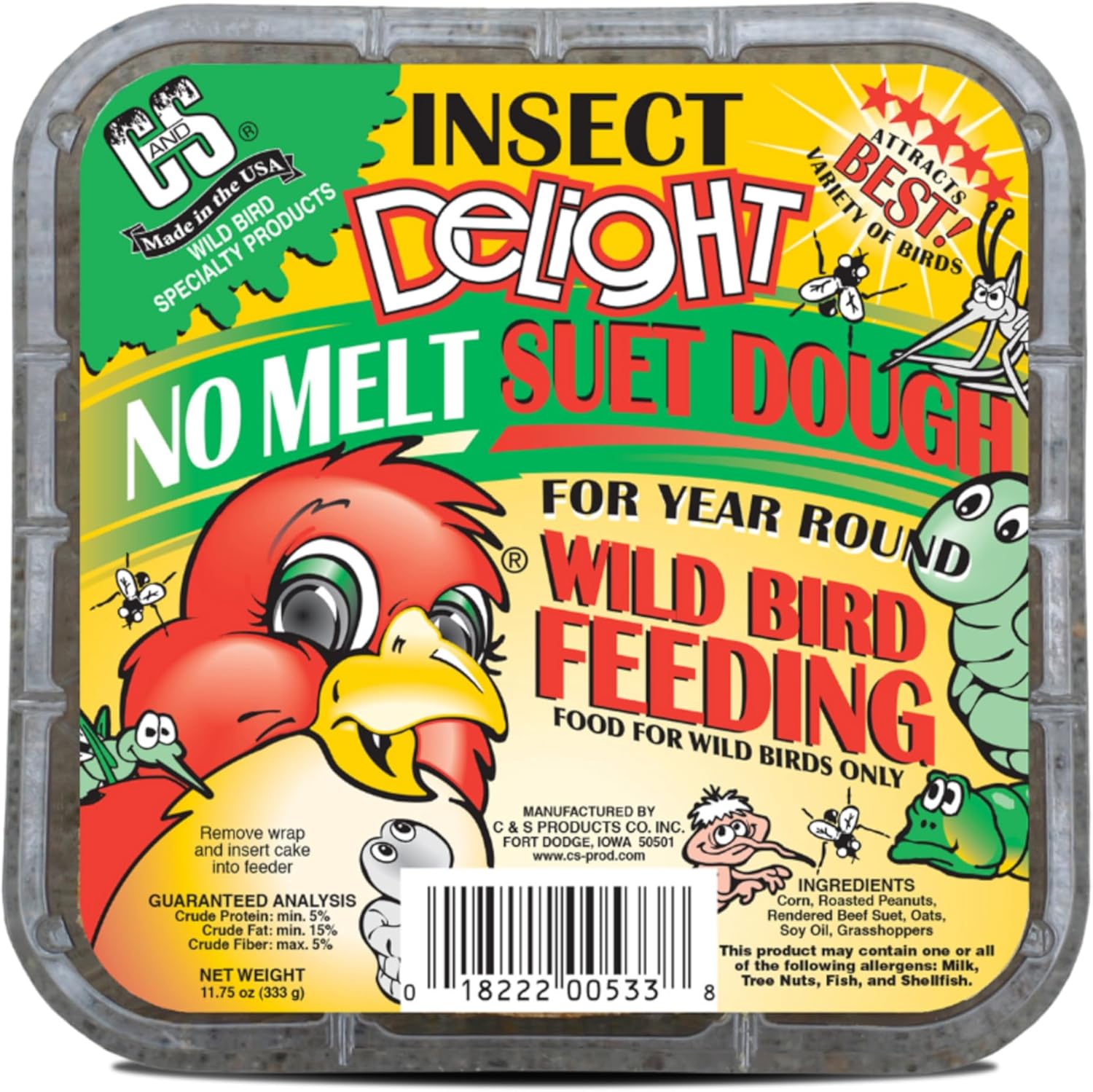 • CREATE A BACKYARD OASIS that birds will flock to all year round with C&S Insect Delight No Melt Suet Dough; This versatile feed can be used in summer, winter, spring and fall