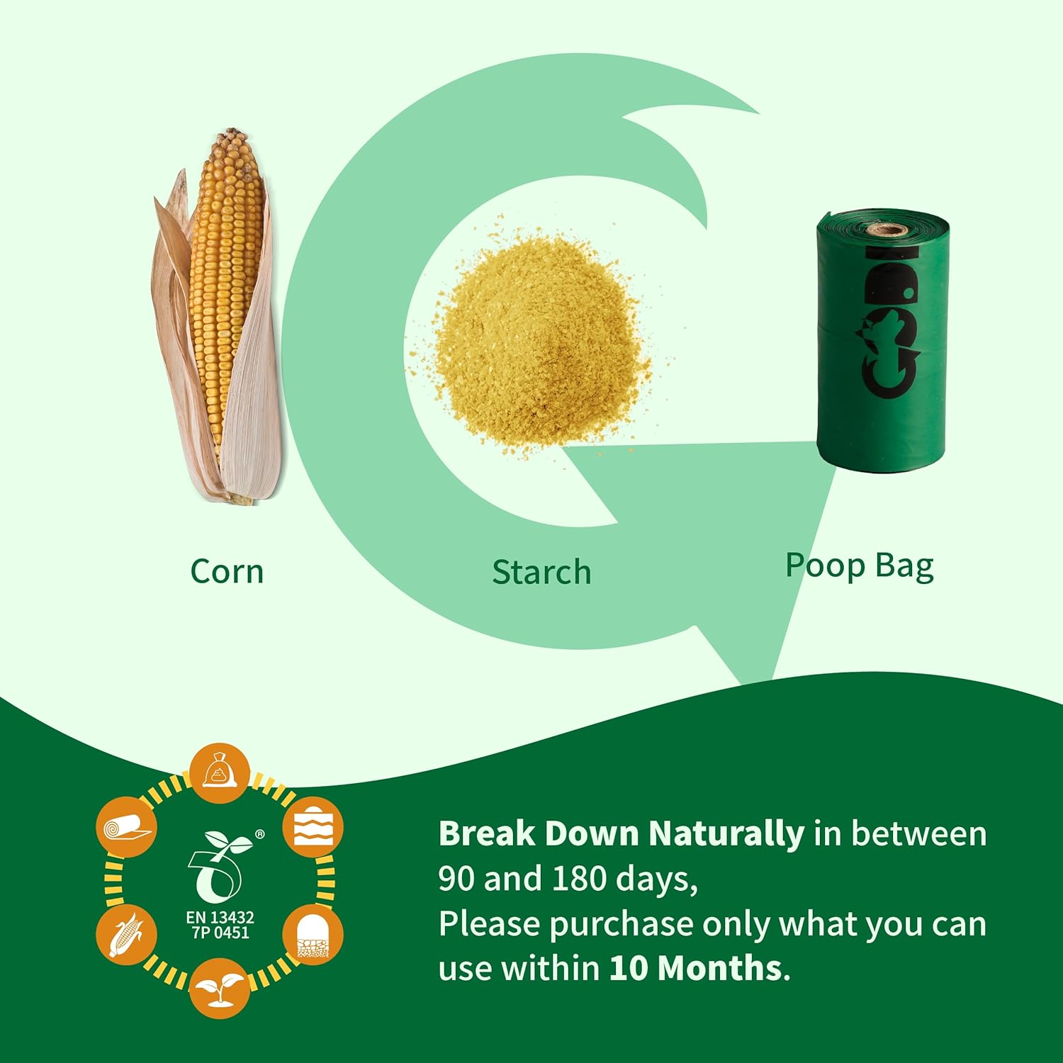 - š± ECO-friendly materials: Codirom dog poop bags are made of corn, vegetable oil, and PBAT (a fully compostable polymer). Keep the bags away from heat sources and store in a cool, dry place. The available time of compostable bags is nearly 12 months, so purchase only that will be used within 10 months.
