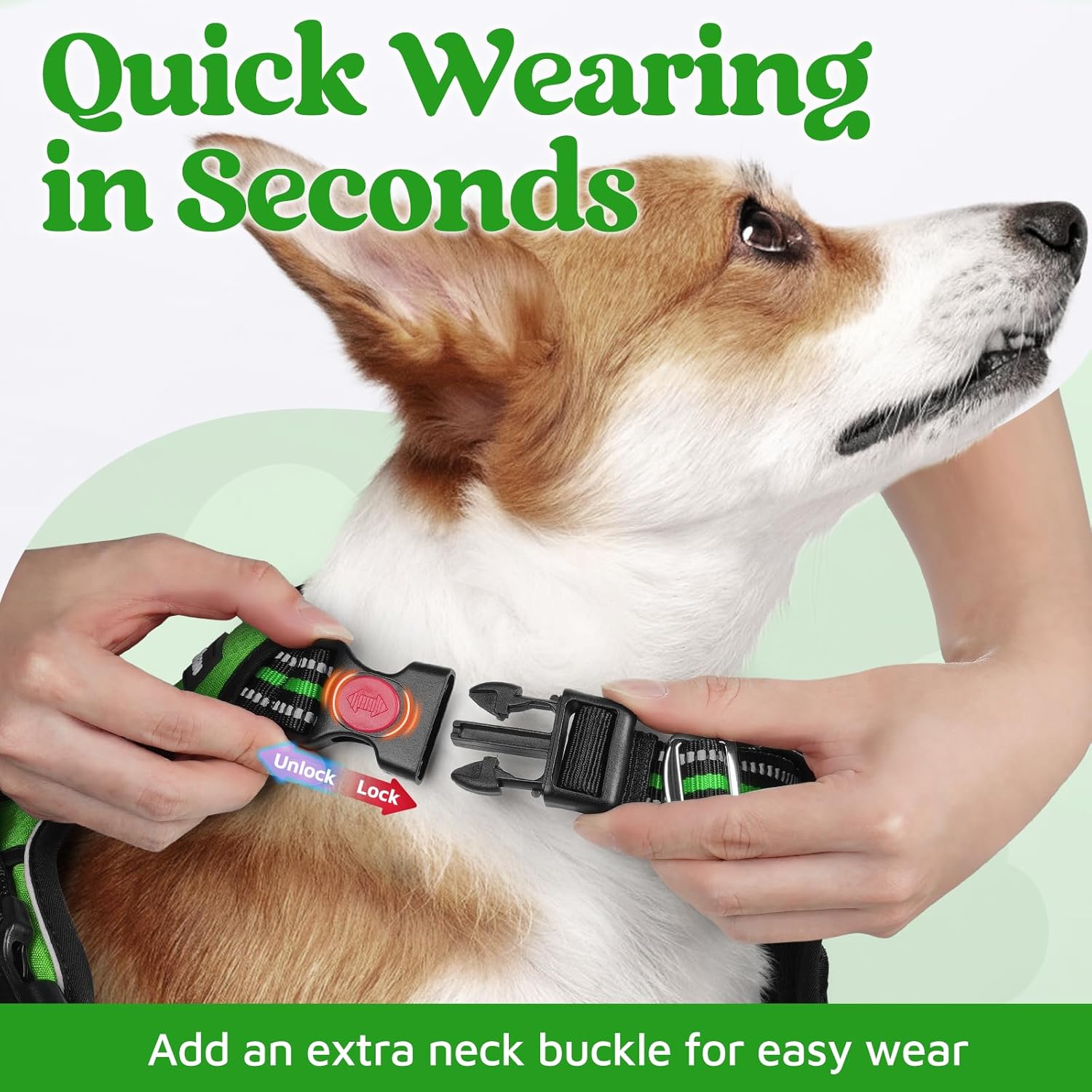 rabbitgoo Dog Harness Small Sized, No Pull Dog Vest with 3 Buckles, Adjustable Soft Padded Pet Harness with Easy Control Handle and Reflective Strips, Green, S