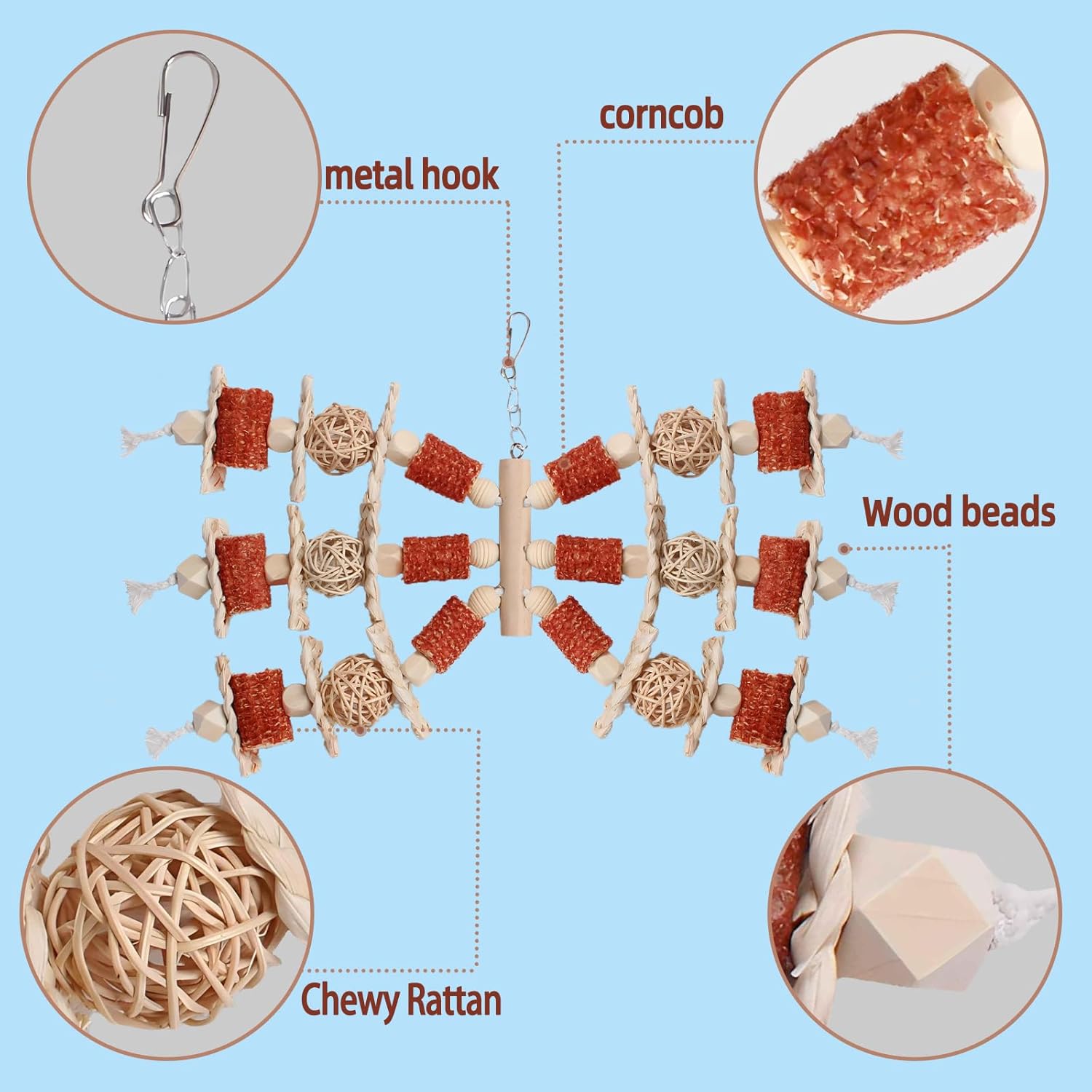 • Durable Structure: These toys are made of high-quality materials, including natural corn cobs, wicker woven wicker balls, wooden sticks and beads made of natural wood, allowing you to fully enjoy the fun of this healthy toy