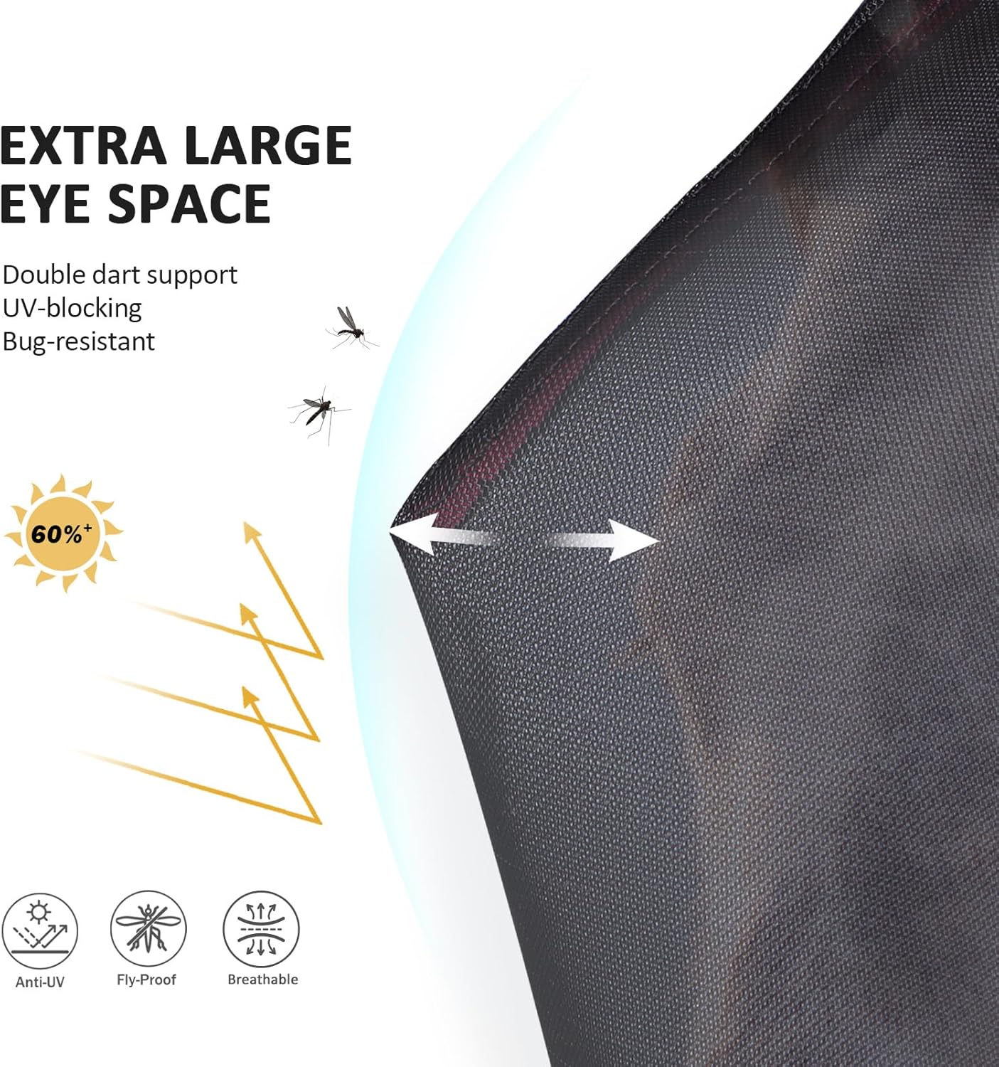 • Advanced Fine Mesh: The fly mask is crafted from an ultra-fine mesh that provides superior protection against insects, dust, and debris while ensuring clear visibility. This lightweight mesh is ideal for all-day wear, allowing your horse to see and interact comfortably.
