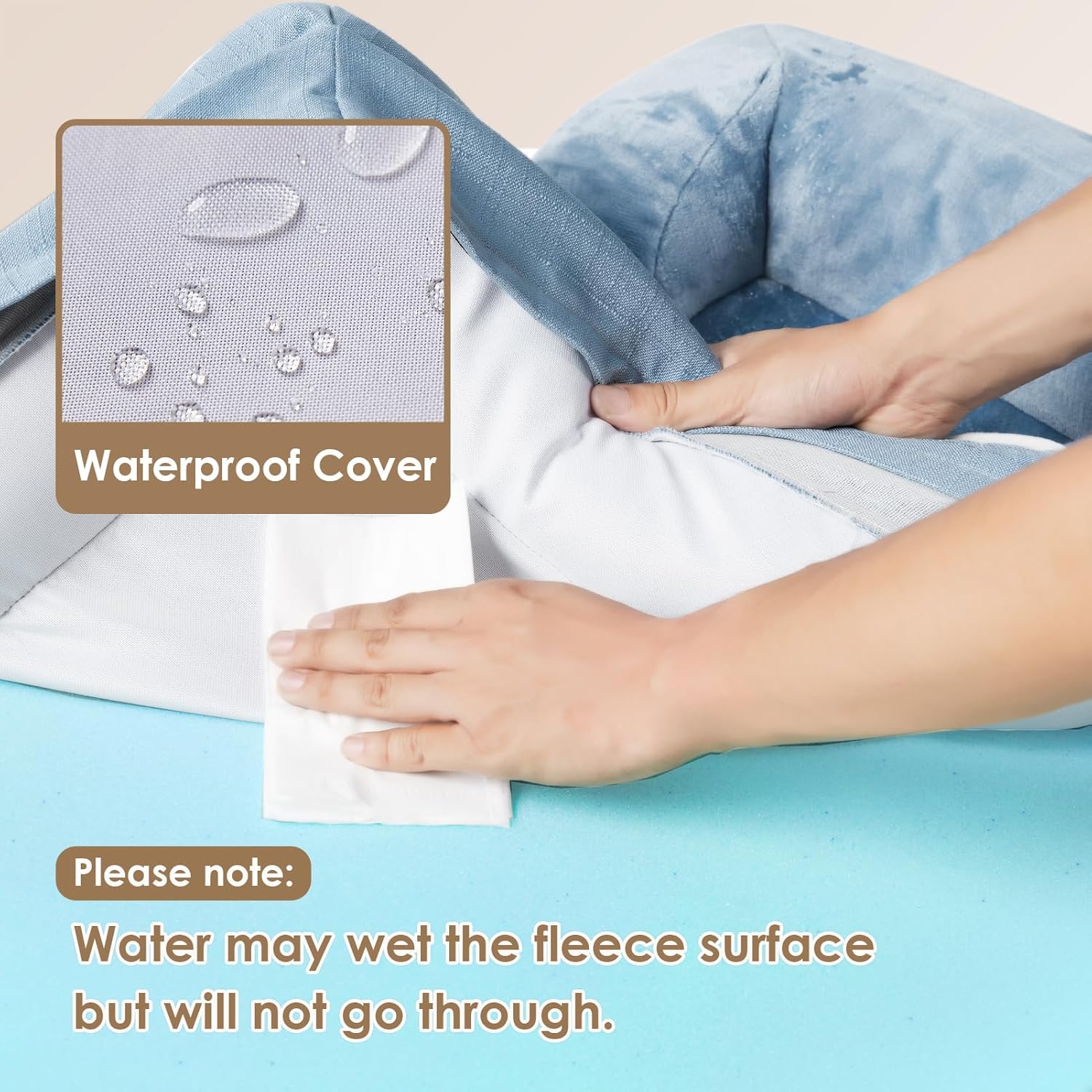 • WATERPROOF FILM and NON-SLIP BOTTOM: There is a waterproof film between the fleece surface and the bottom fabric that makes the dog bed waterproof. However, the faux linen on the side is not waterproof. A non-slip point on the bottom is not easy to slide, and keeps your dog bed steady.