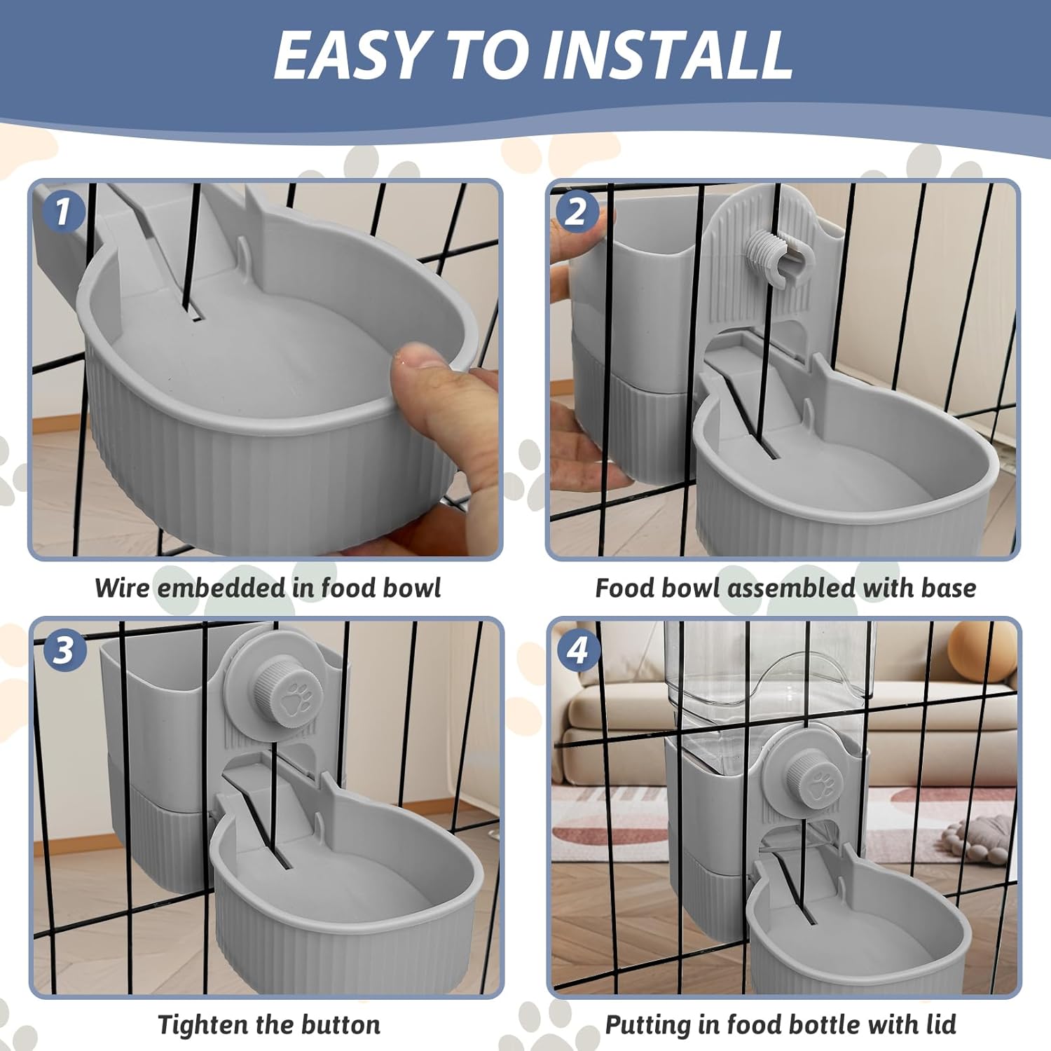 - š° [Easy to Use]: Bunny feeder for cage has a lid on the top for easy refilling of pet food. The water bottle needs to be removed to unscrew the lid to refill. It is recommended to clean it 1-2 times a week to provide your pet with a more hygienic and comfortable eating experience