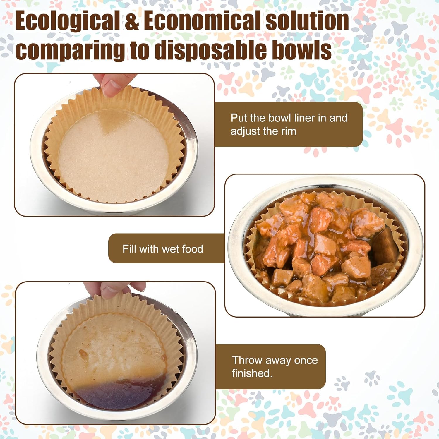 - Rich Quantity: there are 600 pieces of disposable pet bowl liners in kraft brown, abundant quantity can meet your pet's daily use and replacement needs; Please note that the package have liners only, bowls are not included