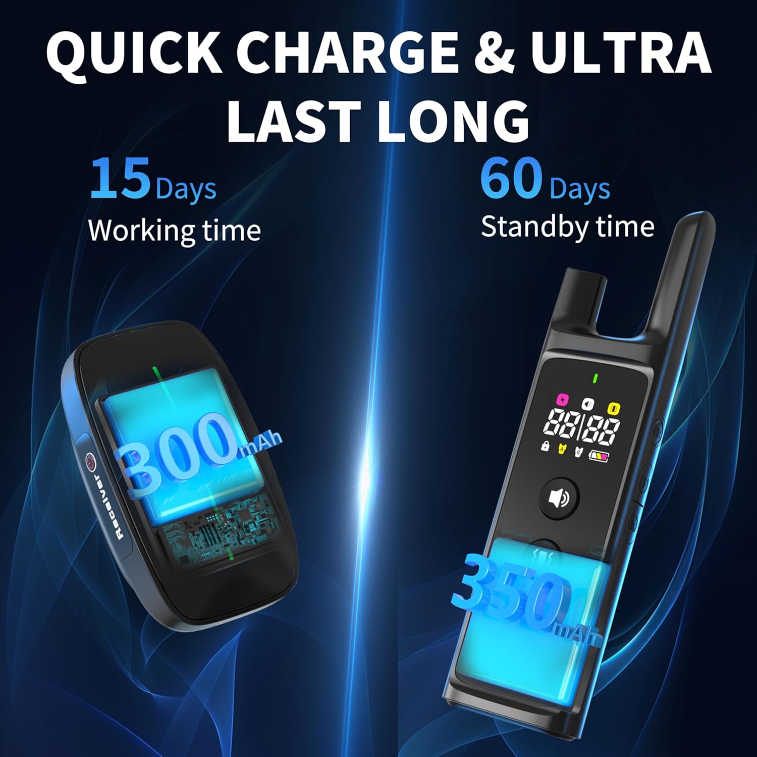 • 【Fast Response Speed & Super Easy to Use】 Dog shock collar with remote upgraded smart AI chip to enhance 8X faster response time. Click the button, the signal will be transmitted to the collar within 0.01S, up to 3300ft remote range. Ensuring your commands are accurately and immediately communicated. This enables your furry companion to understand without confusion. With large buttons and a clearer, larger display. The battery life of both the remote and receiver is shown on the screen.