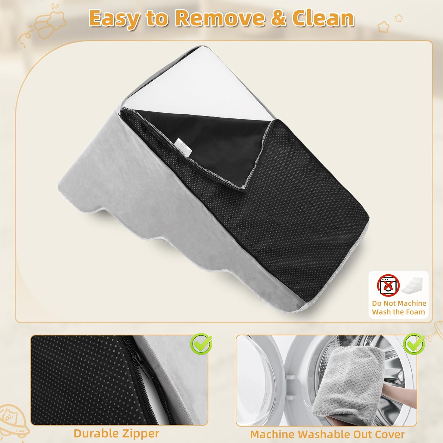 - 【Safe and Sturdy】Made of 30 D high density foam, our dog steps for small dogs have excellent firmness and resilience. So, our pet stairs can reduce the pressure on pets'legs and effectively protect pets'knee joints. Provide our pets with the best protection.