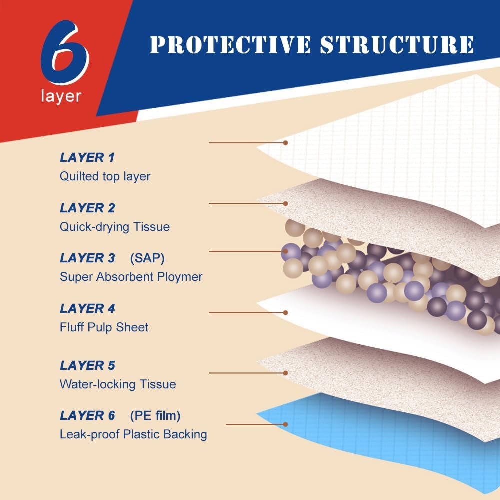 - 6 Layer Leak-Proof Design: Our puppy pads feature a 6-layer construction that effectively locks in moisture and prevents leaks, keeping your floors clean and dry.