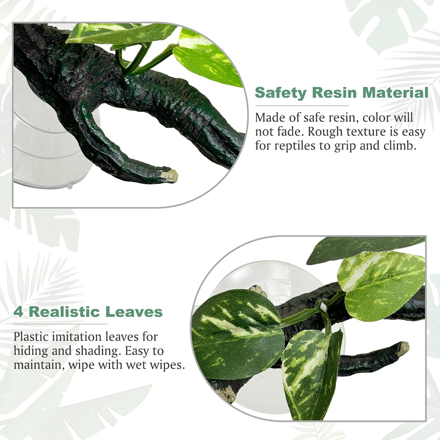 • [Powerful Suction Cups]: Branches for reptiles comes with 2 suction cups with strong adsorption, which can be stably fixed on the clean and smooth tank wall, not easy to fall off, let your lizard climb and play to its heart's content