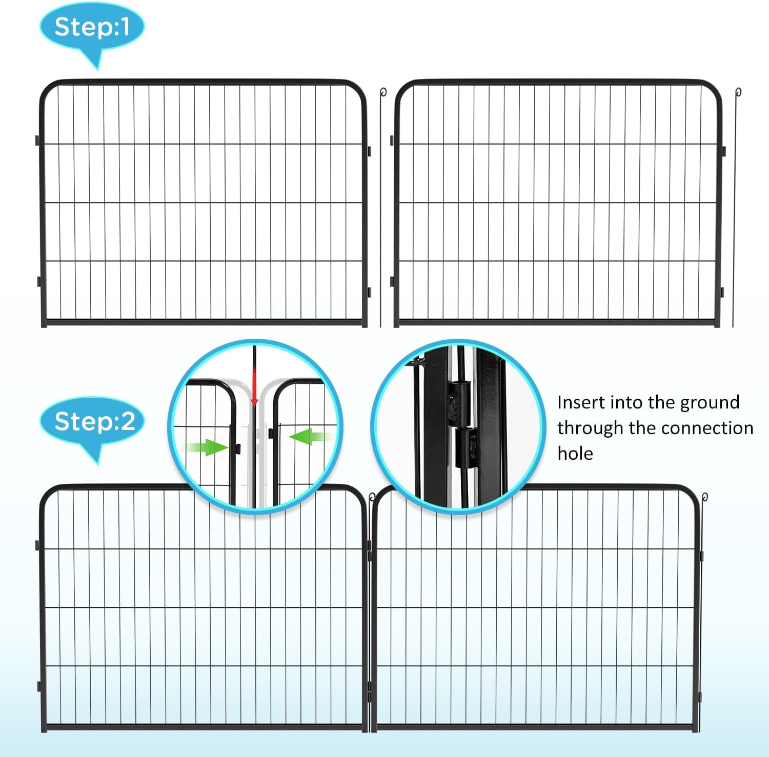 - USE AS EXTENSIONS OR REPLACEMENTS: These strong durable metal fence panels easily connect to expand your existing dog playpen or replace damaged sections, keeping your pet’s area safe and secure.