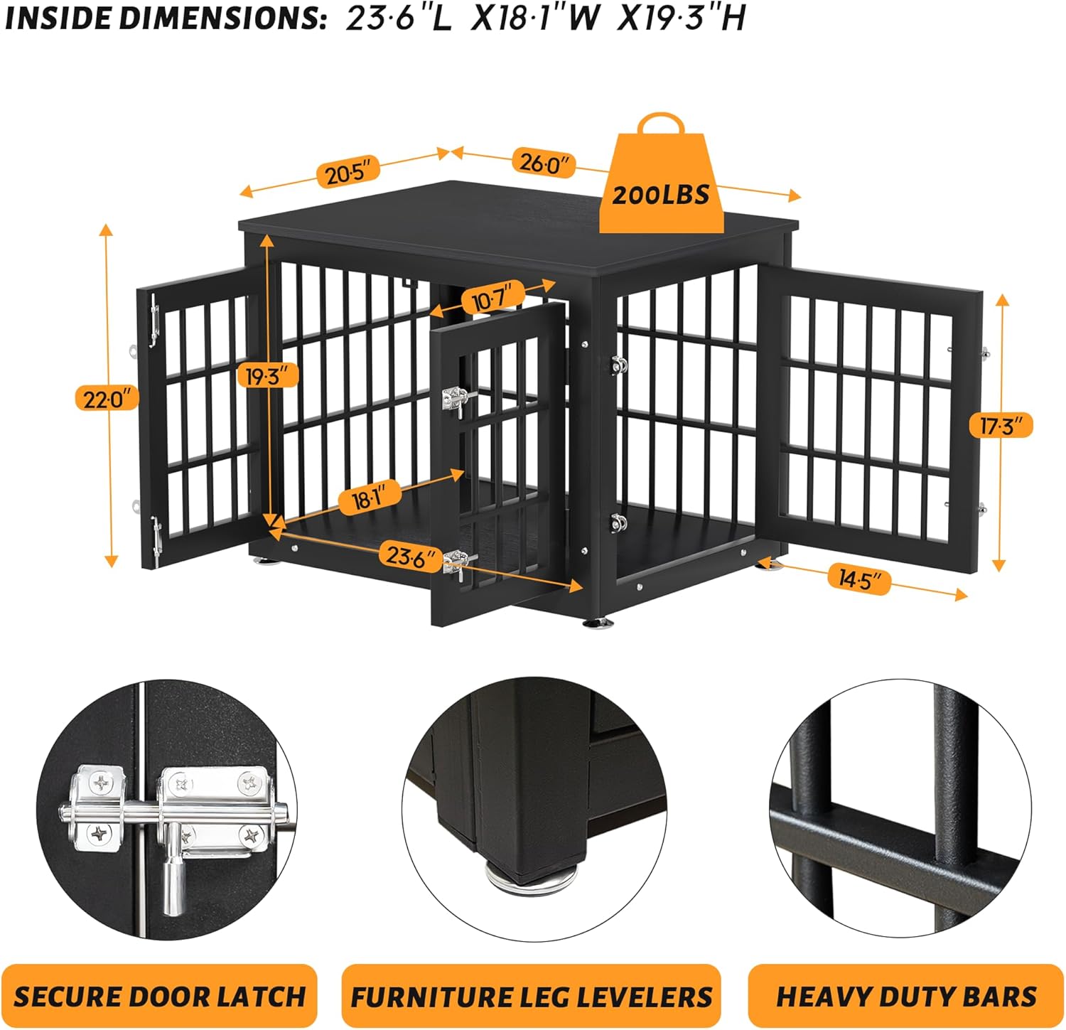 26 Inch Heavy Duty Dog Crate Furniture for Small Dogs, Decorative Pet House End Table, Wooden Cage Kennel Furniture Indoor, Black