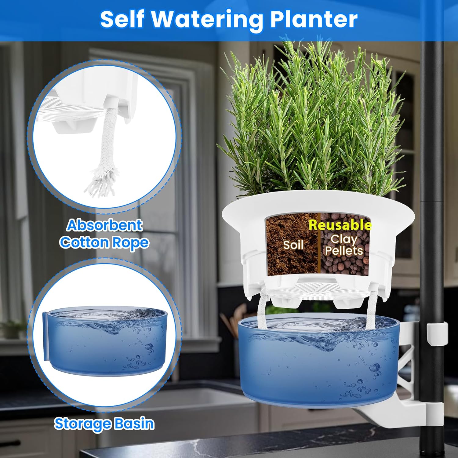 • · Dual Purpose Planters with Built-in Absorption Cotton: The system offers a dual-purpose planter with built-in cotton wicks, perfect for both soil and hydroponic growth. Whether you prefer plant pots with stands or plant grow lights for better lighting, this setup ensures your plants thrive, a great Indoor gardening system for you, both soil grow and hydroponic grow is fine