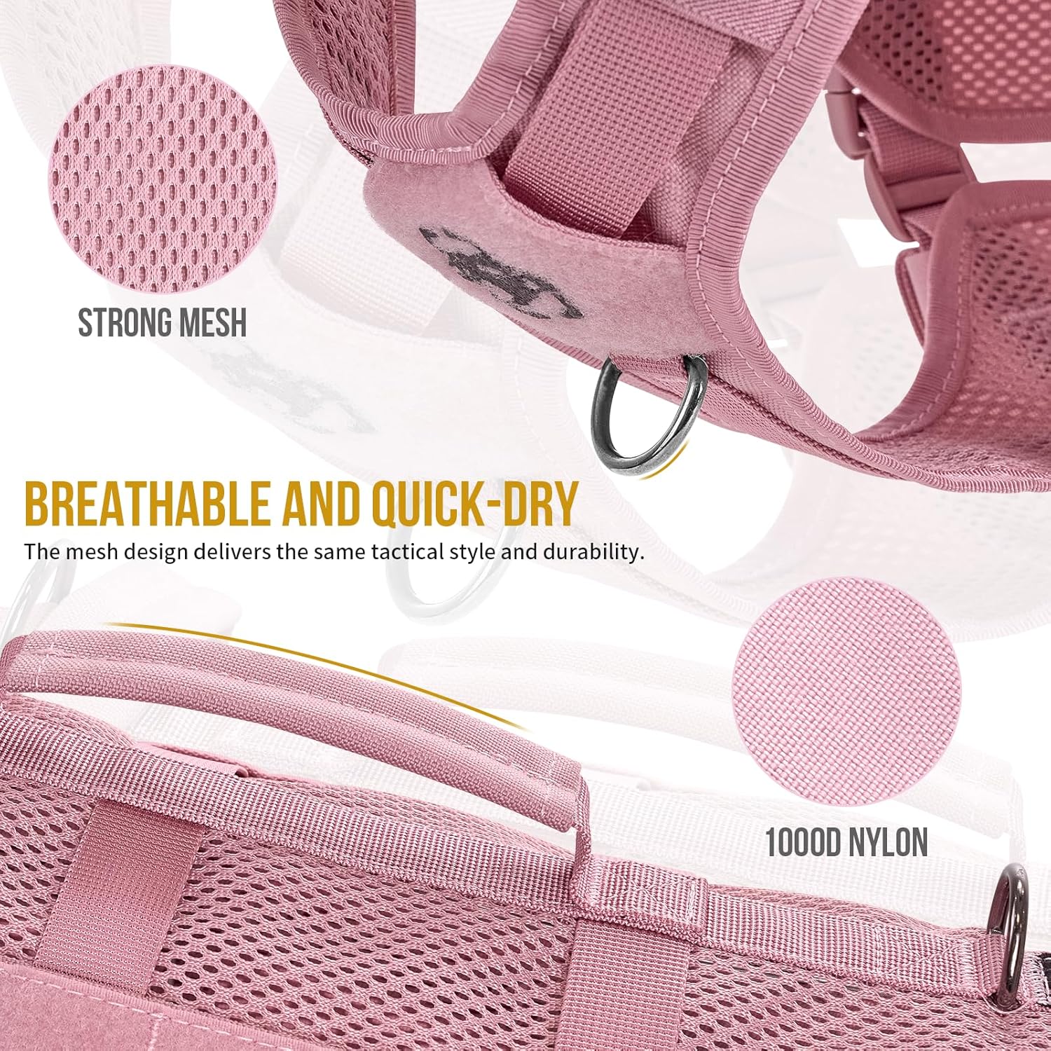 OneTigris Tactical Dog Harness for Small Dogs, No Pull Small Dog Vest Harness with Handles Breathable Military Dogs Molle Vests, Harness for Walking Hiking Training (Pink, XS)