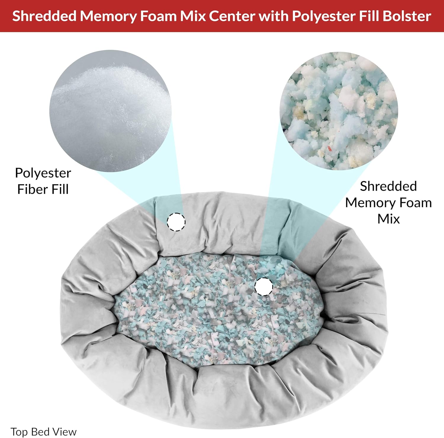 - [Ultimate Comfort with Shredded Memory Foam] Crafted with premium shredded memory foam, our dog bed conforms to your pet’s shape, easing joint pressure and promoting restorative sleep. The round donut shape offers a cozy, inviting space, ensuring every nap is blissfully comfortable and supports natural sleep positions with our dog beds medium sized dog. This shredded memory foam center cushion with polyester fiber fill bolster dog bed gives them the comfort they’ll never want to leave!