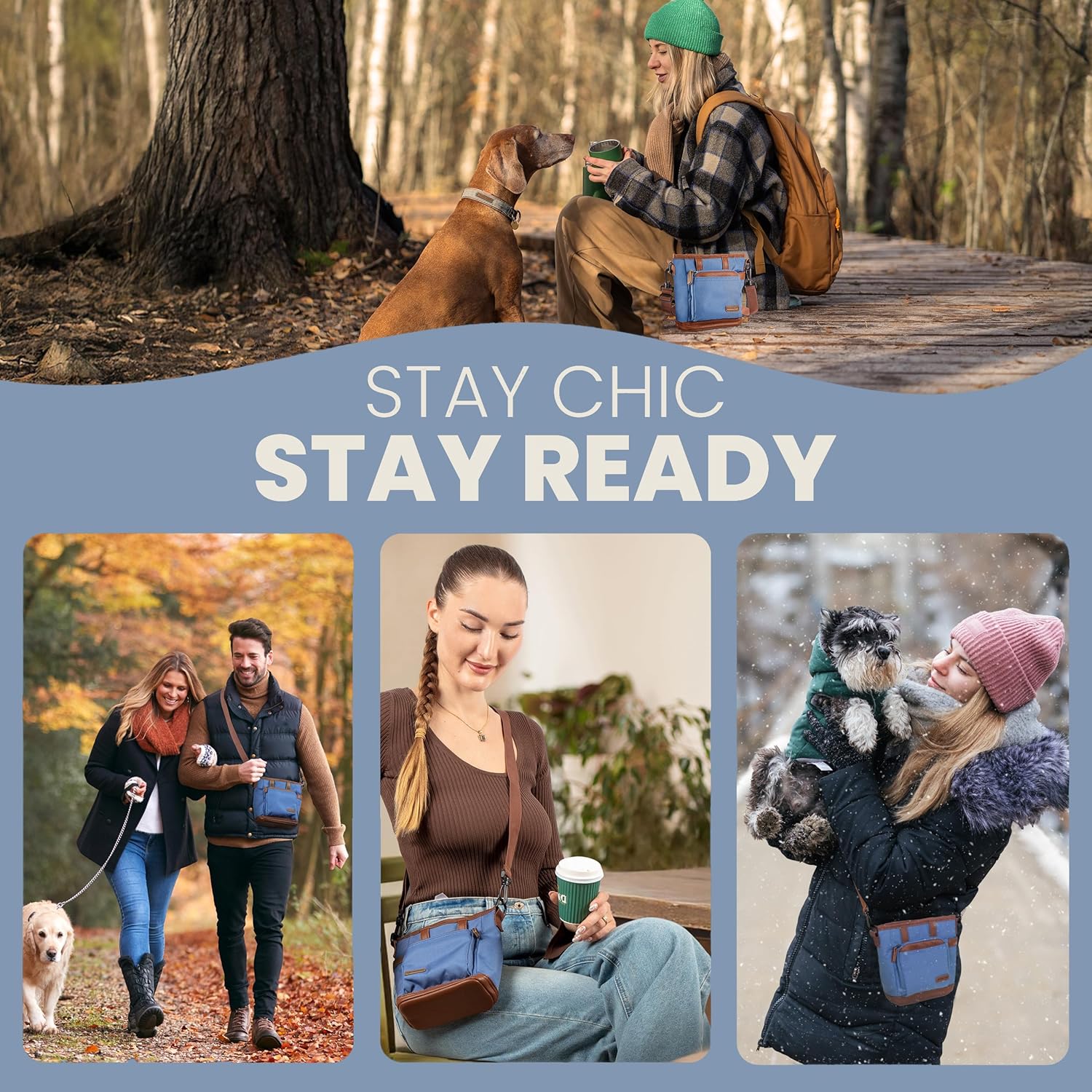 - 【ALL-IN-ONE STORAGE】 - With ample space and an expandable pocket, this dog walking bag holds treats, training tools, and poop bag rolls, easily holding your phone, keys, wallet, tennis ball, and documents, making it a great companion for long walks or outdoor adventures.
