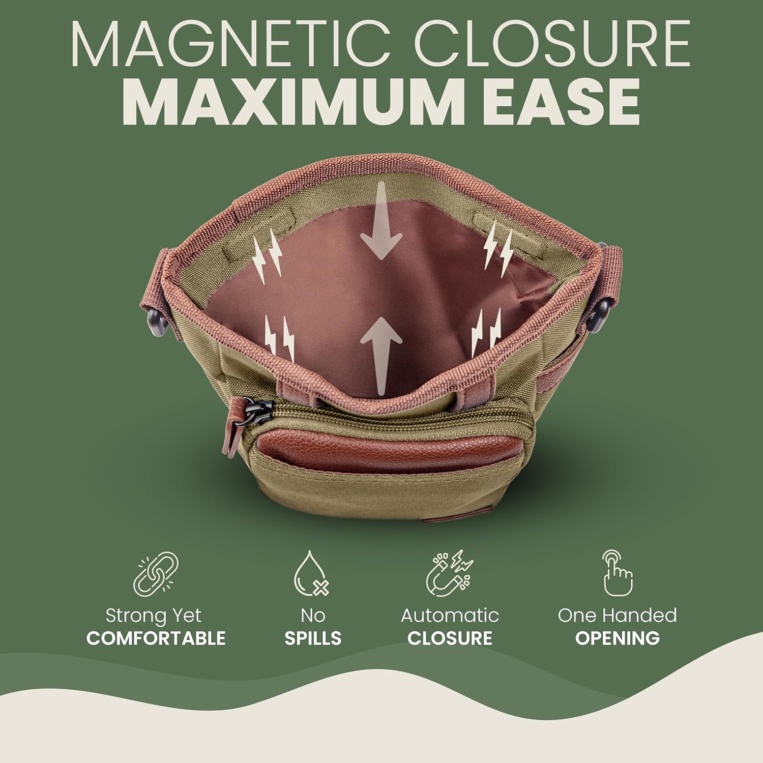 • 【EFFORTLESS ONE-HANDED ACCESS】 - The magnetic closure of this puppy treat pouch ensures fast access to treats, allowing you to reward your dog effortlessly during training sessions or walks without breaking the flow.