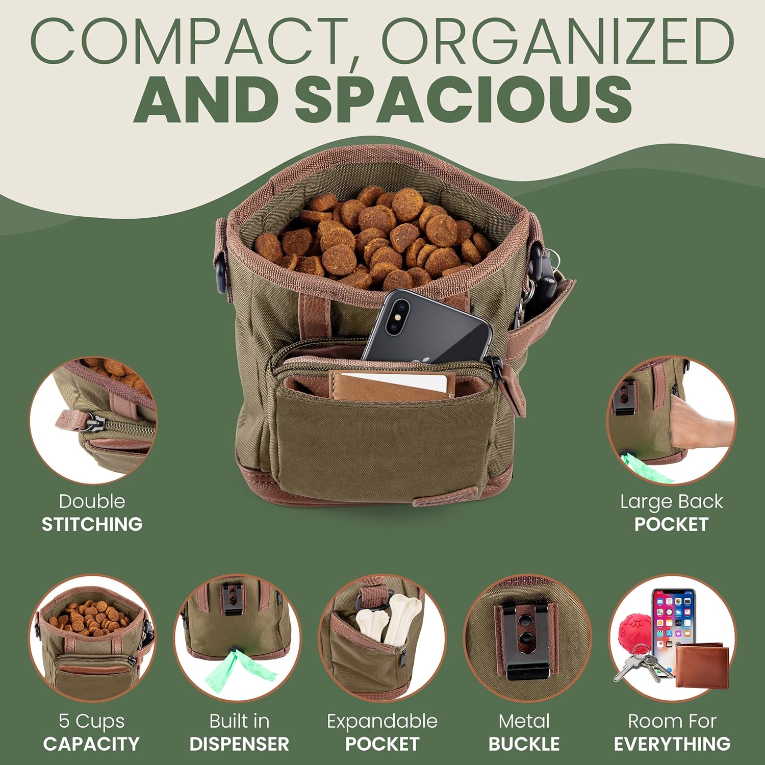 BEAU&FUR Dog Treat Pouch with Clicker for Training - Hands-Free Dog Treat Bag with Magnetic Closure, Built-in Poop Bag Holder Pocket