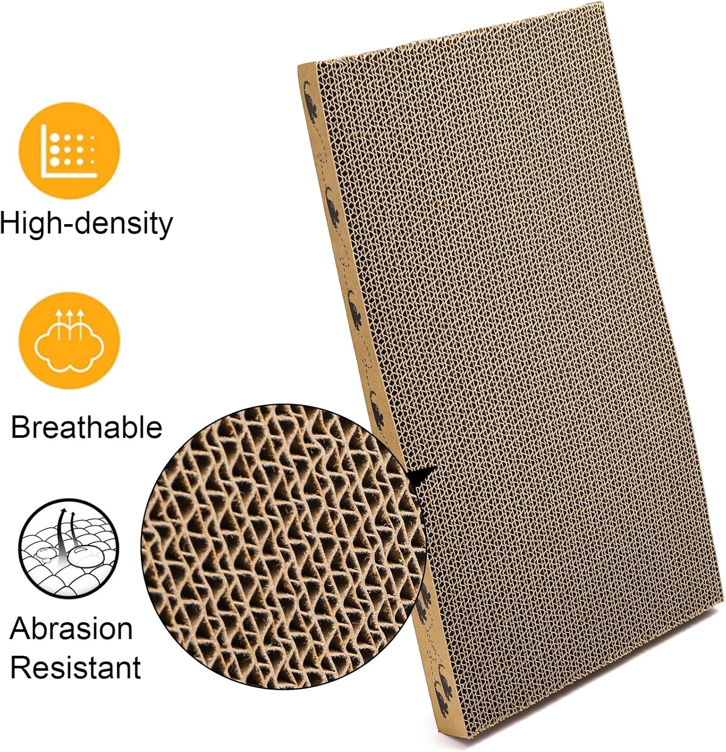 • High Quality Material: Our cat scratcher bed is made of heavy duty cardboard, totally premium and durable. The dense corrugated surface can withstand sharp claws for a long time, helping your cat stretch and keeping your cat's claws trimmed and well-maintained.