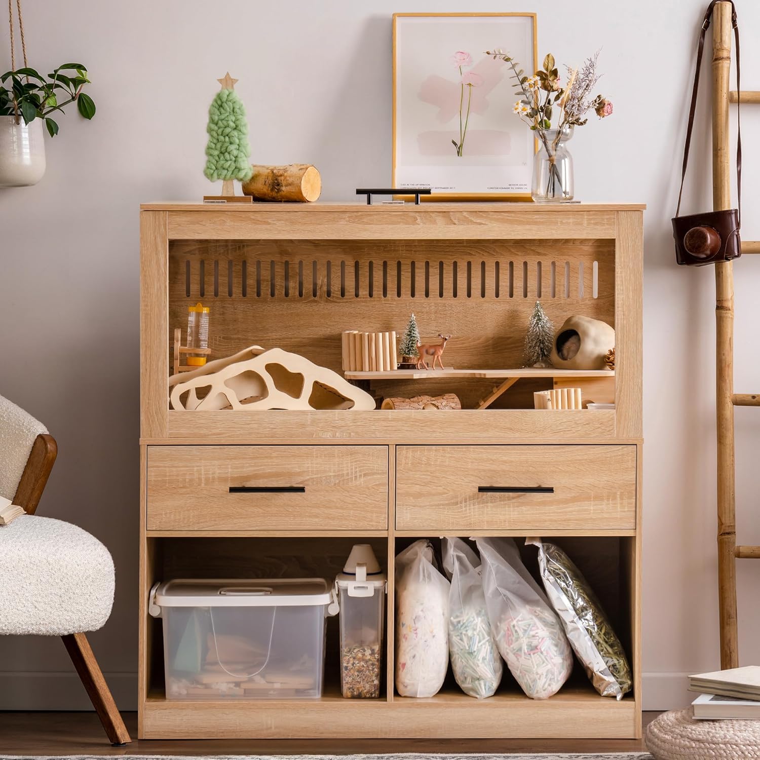MEWOOFUN Large Hamster Cage, Hamster Cage and Habitats with Drawers and Storage Cabinet, Openable Top, Three-Sided Visibility and Four-Sided Ventilation, 39.4" L x 19.7" W x 41.7" H