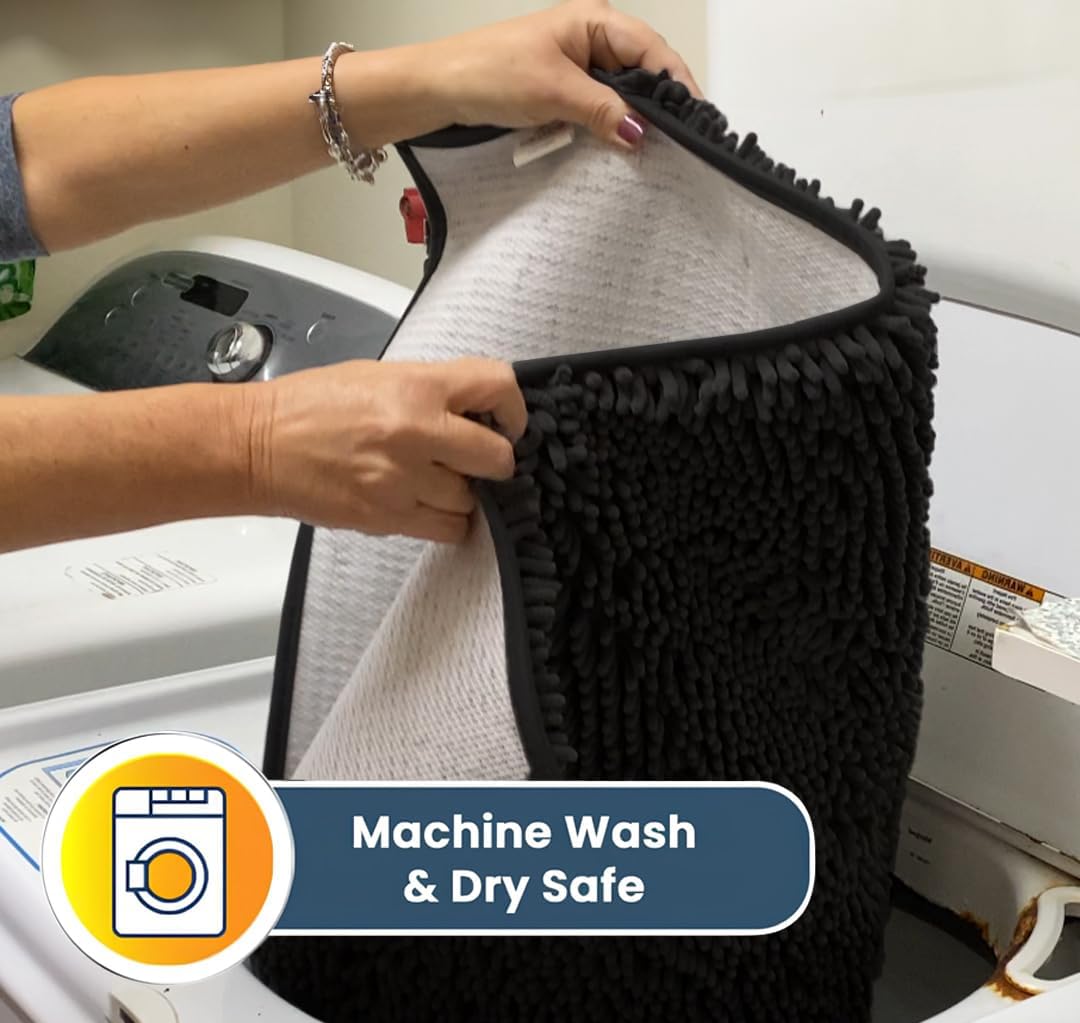 - [ ULTRA MOISTURE ABSORBENT ] Designed with a thick layer of plush 1-inch chenille that soaks up to 5X its weight for maximum water absorption ideal for trapping liquid from shower floors and wet spills from pets.