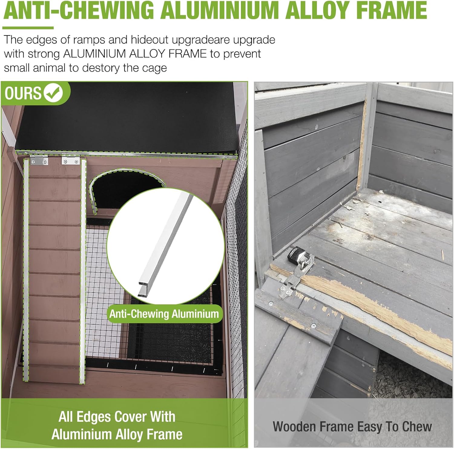 • Anti-Chew Protection: The edge of ramp and sleeping rabbit house upgraded with metal-edge to prevents chewing damage, keeping your pet safe and the cage intact
