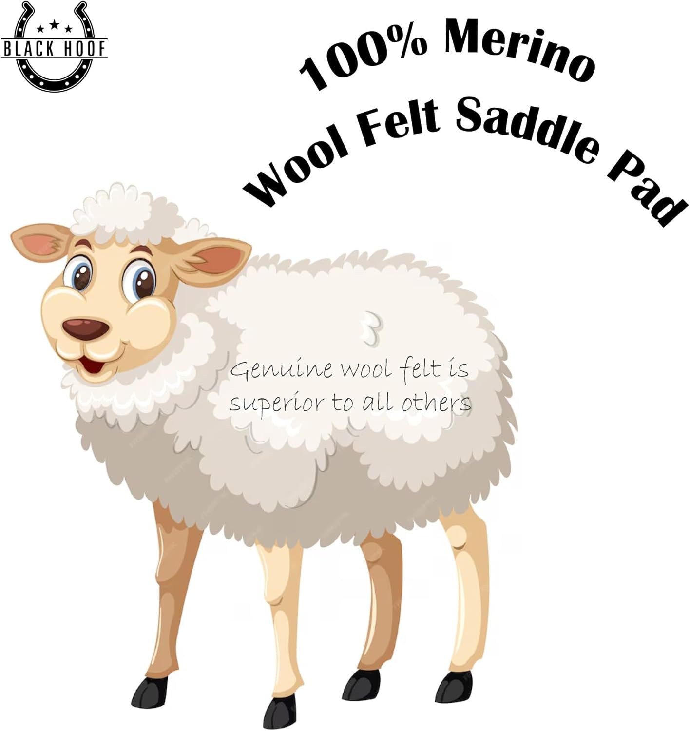 • PREMIUM MERINO WOOL FOR SUPERIOR COMFORT Crafted with 100% steam-pressed Merino wool felt, this saddle pad provides exceptional softness and cushioning. The high-quality wool minimizes pressure points and ensures your horse enjoys maximum comfort during every ride.