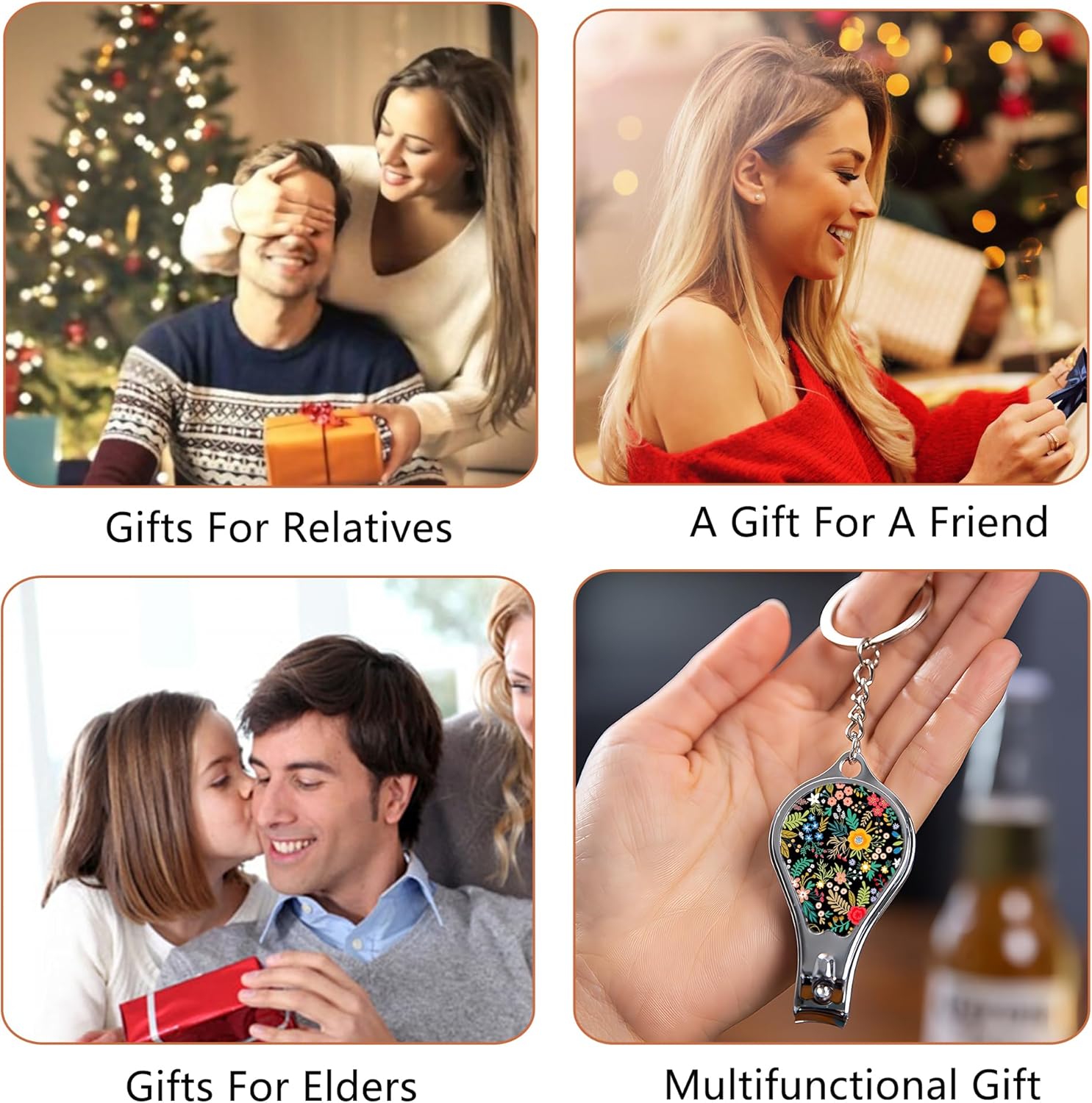 Nail Clippers with Key Chain Cute Stainless Steel Nail Cutter with File Professional Toenail Clipper for Men Multifunction Toenail Clipper 2 Pack Nique Cutter for Adult(Flower)