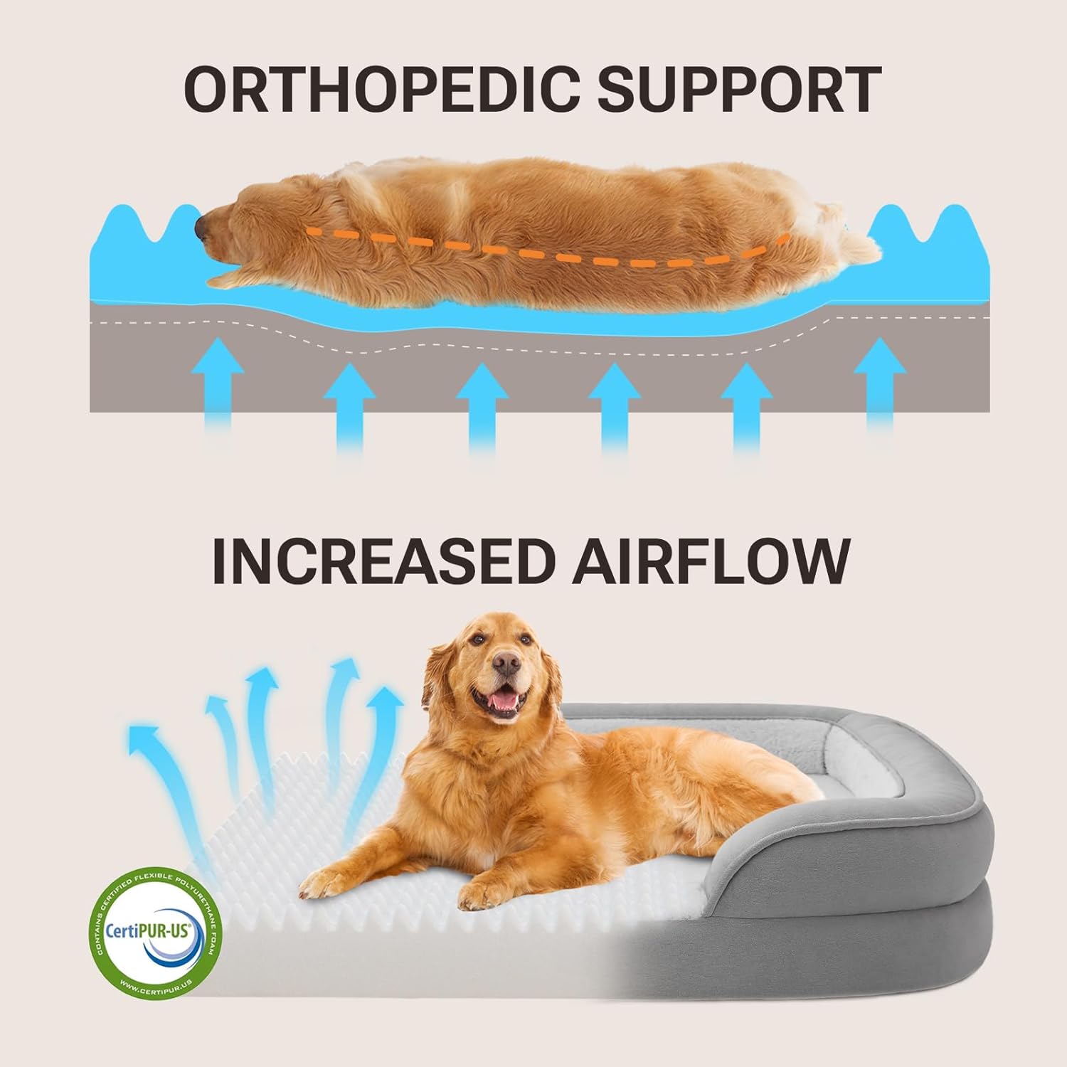 Soft Touch Orthopedic XL Dog Bed for Large Dogs with Faux Fur Top, Waterproof Pet Couch Bed with Removable Washable Cover and Supportive Foam Filling (Brown, Extra Large)