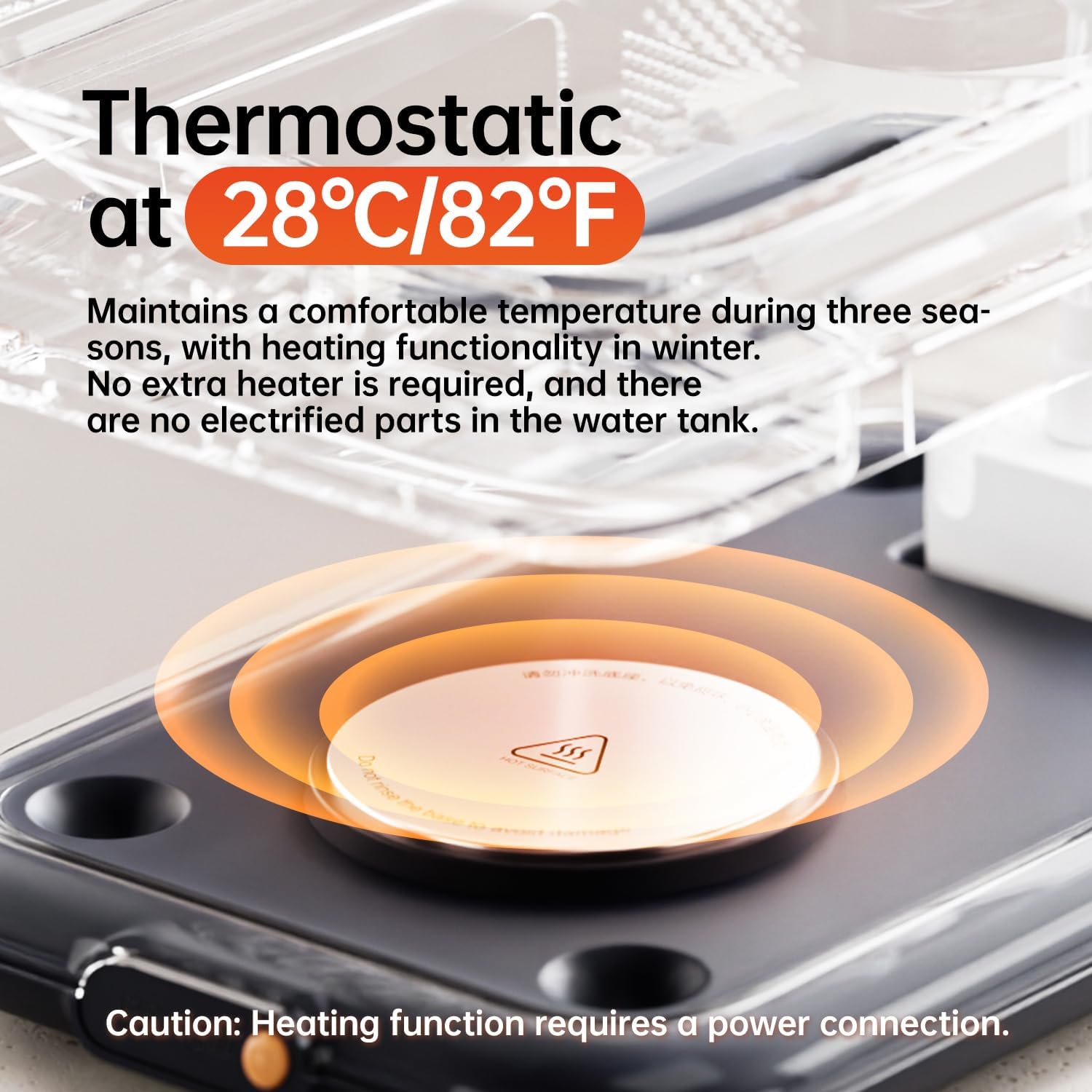 - Thermostatic Heating at 28°C/82℉ – Maintains water at a consistent 28°C/82℉ to keep pets hydrated in cooler weather. Heating function requires power connection. No electrified parts in the water tank for safety.