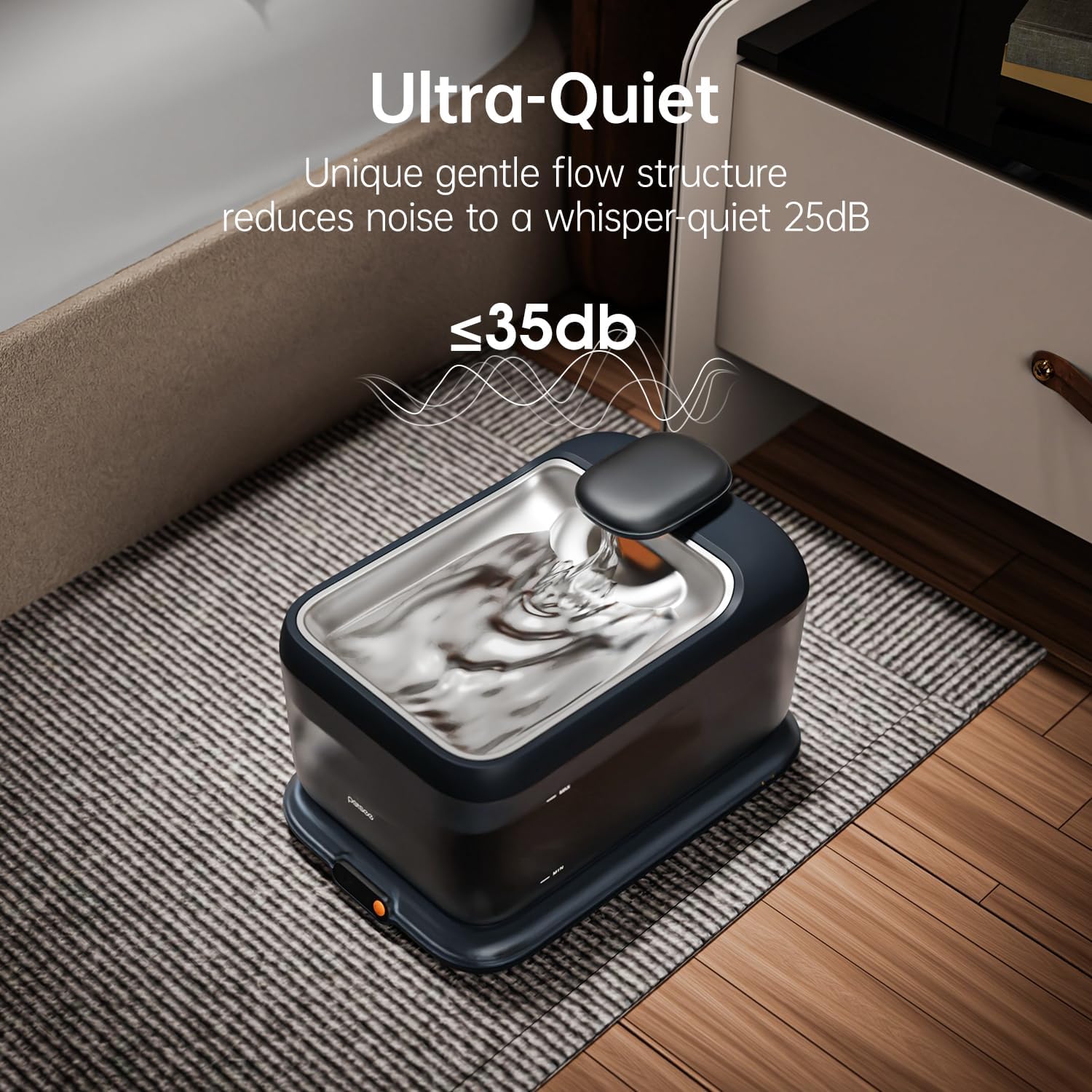 - Hygienic Stainless Steel Tray and Quiet Pump – Rust-resistant tray is durable and easy to clean. Ultra-quiet water pump runs below 35dB for a peaceful environment.