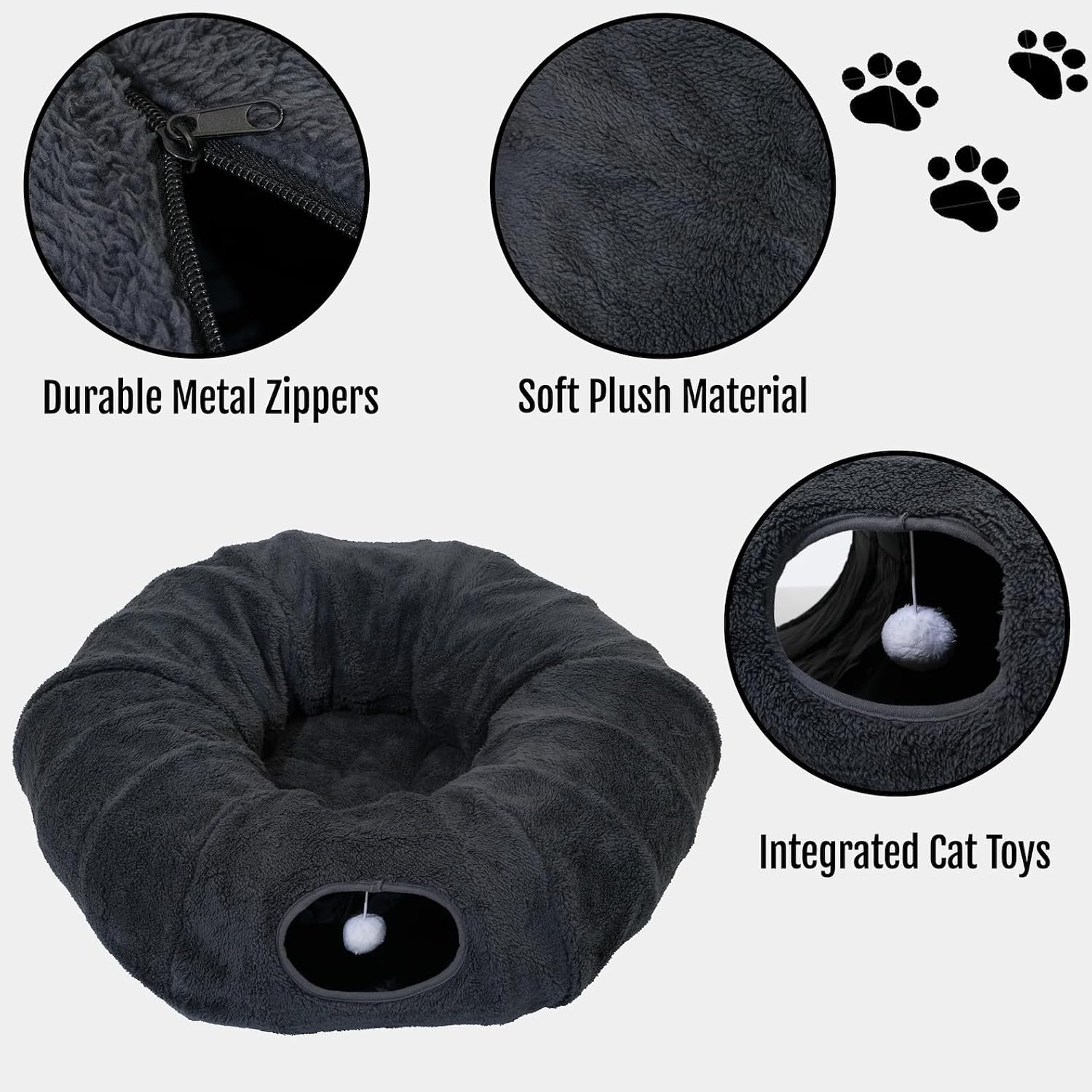 - 2-in-1 Tunnel & Bed Combo: R1mβs innovative design combines a cozy sleeping space with an exciting play tunnel. Ideal for cats up to 30 lbs and small pets like rabbits, ferrets, or even small dogs, it offers both a private hideaway and an active playground.