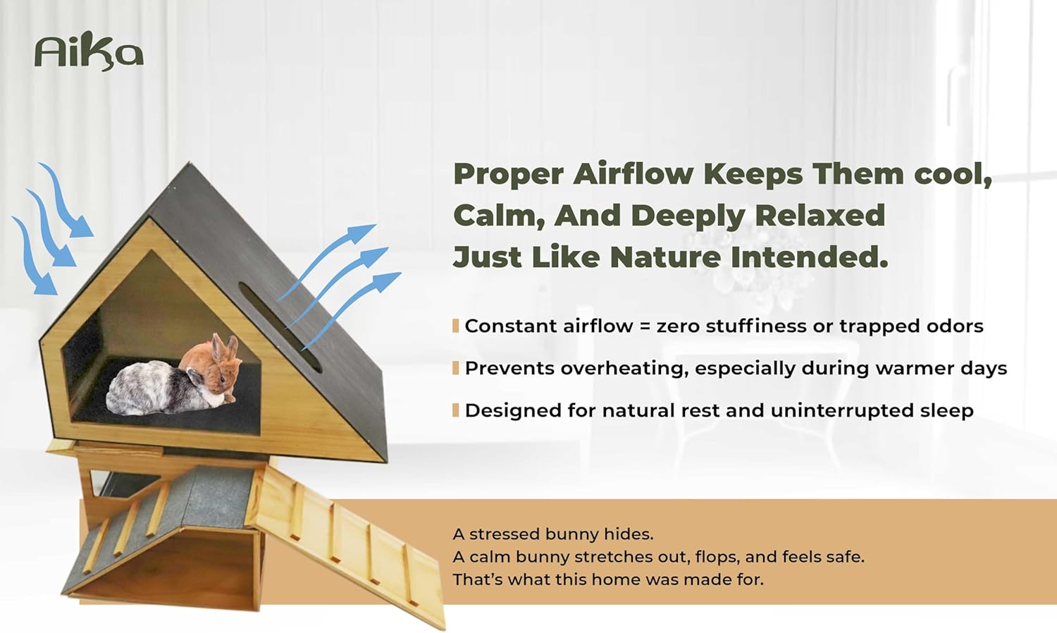 - Easy Assembly: This rabbit house indoor/outdoor is designed for quick, tool-free assembly. The slots in the wooden rabbit house are firmly locked with rubber bands, ensuring the structure remains sturdy and stable.