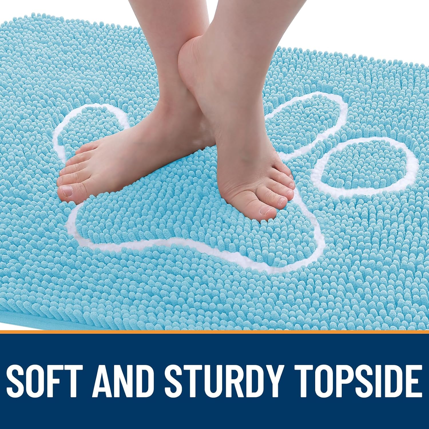 OLANLY Door Mat for Muddy Dog Paws 30x20, Ultra Absorbent Chenille Mud Doormat with Paw Print Design, Non-Slip Washable Doormat for Indoor Entryway, Quick-Dry Pet Bed Mats for Dirty Dogs, Blue