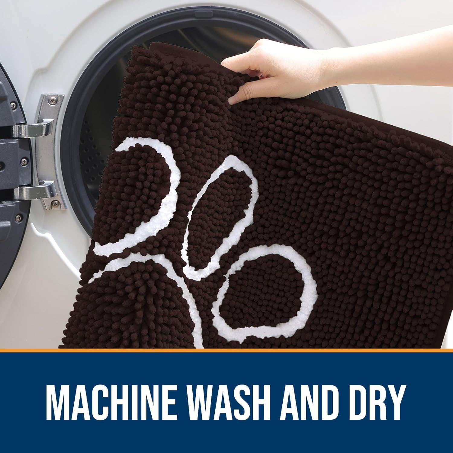 OLANLY Door Mat for Muddy Dog Paws 59x35, Ultra Absorbent Chenille Mud Doormat with Paw Print Design, Non-Slip Washable Doormat for Indoor Entryway, Quick-Dry Pet Bed Mats for Dirty Dogs, Brown