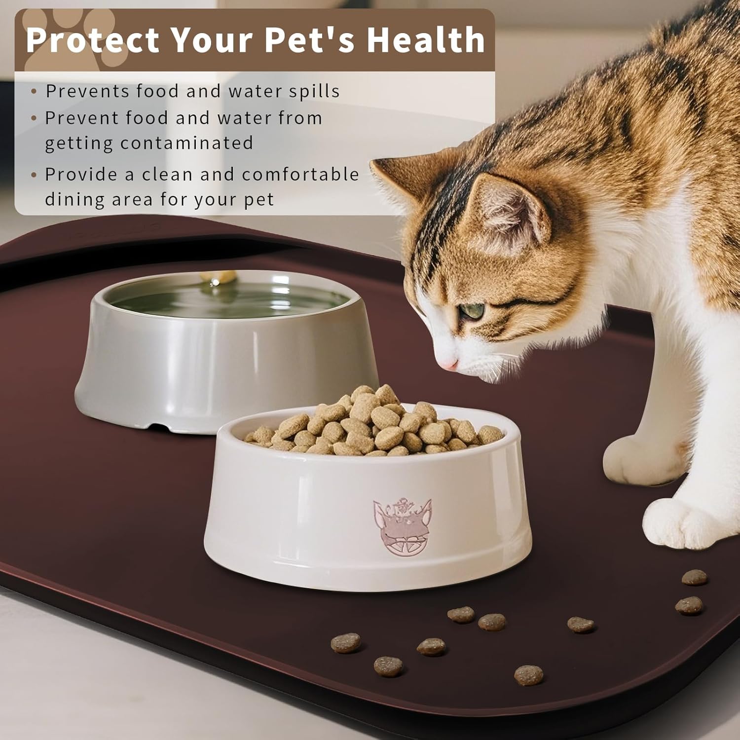- Safe, Healthy Materials - Our non slip elevated pet food placemats for pets are made from high-quality food-grade silicone that is non-toxic and 100% free of harmful chemicals like BPA, PVC, and phthalates. It can withstand temperatures up to 464°F, making it durable yet safe - the perfect choice for your kitten, dogs, or any pets.