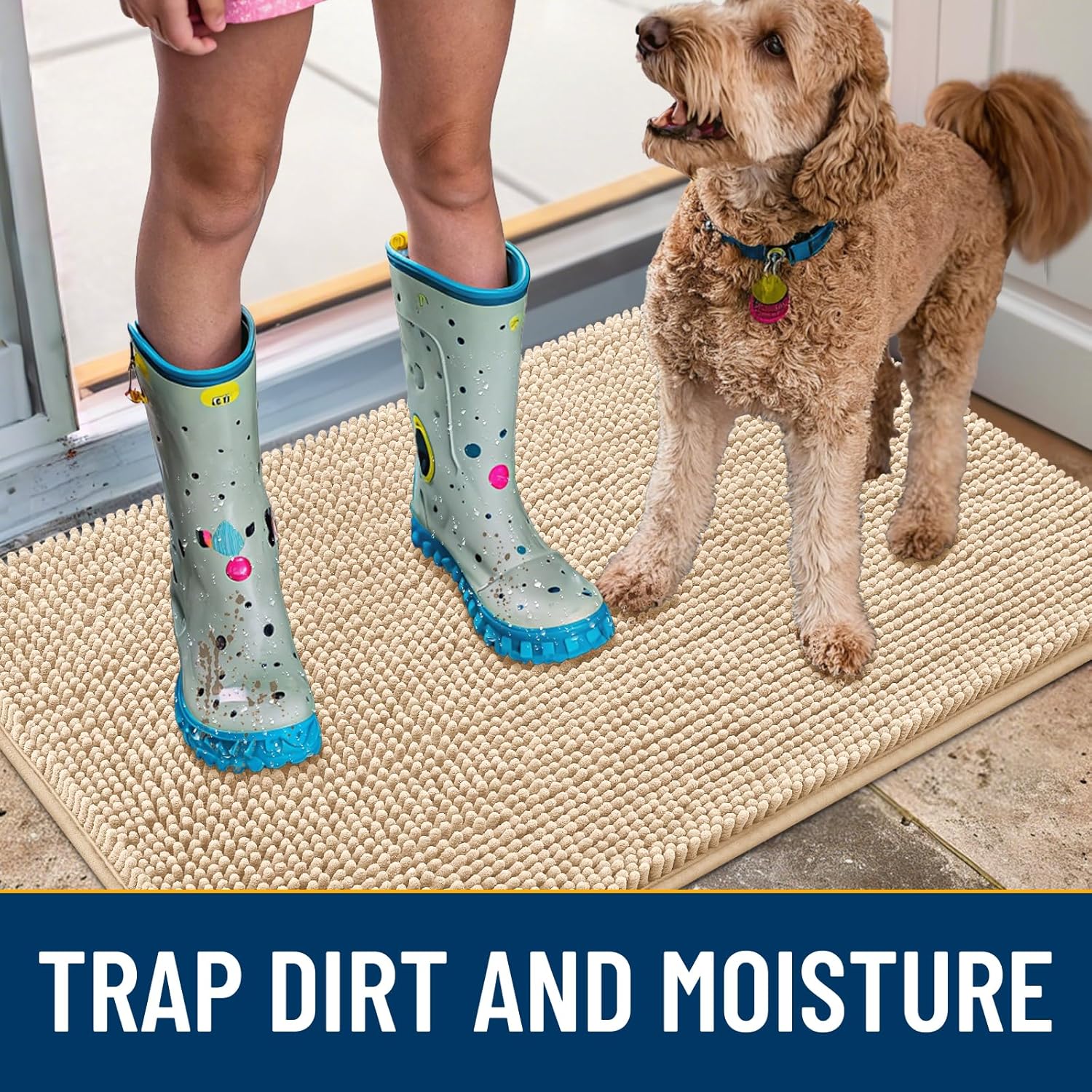 Smiry Dog Door Mat for Muddy Paws 47x24, Absorbs Moisture and Dirt Doormat, Non-Slip Washable Quick Dry Chenille Front Door Mat Indoor Entrance, Entryway Carpet for Inside Floor, Beige